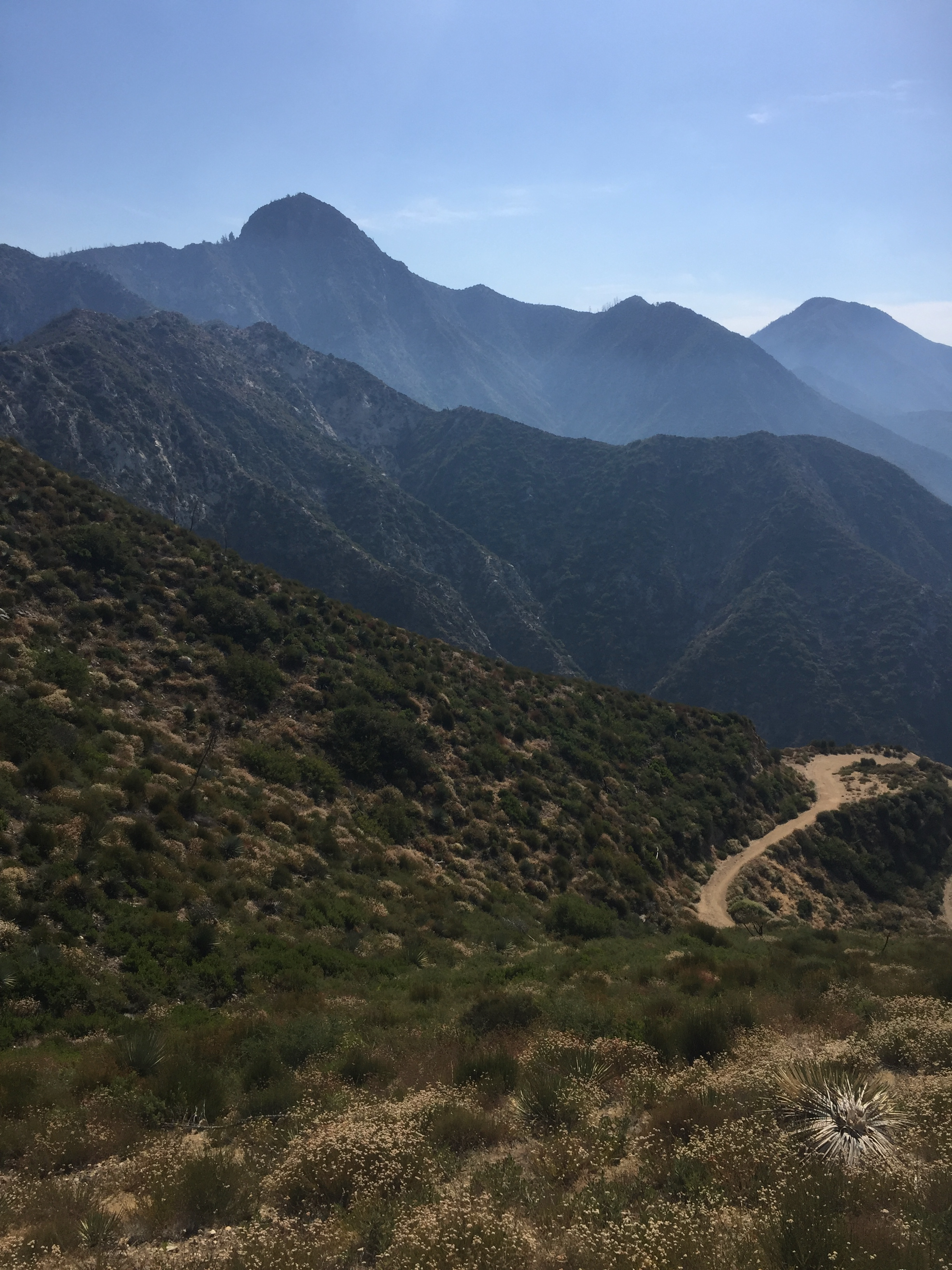 The hike down was as hot as feared and the smoke from several fires was pretty bad but I was glad to be descending. The thermometer in the car read 106ºF.