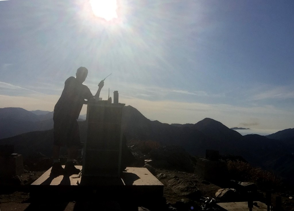 I made 15 contacts all on 2m FM. Among them one summit-to-summit with David, N6AN on Flint Peak (W6/CT-225), with Cassie (KG6MZR) back home in Topanga and with Scott, WA9STI. My furthest contact was with W6FE in Chula Vista, who was full scale on my radio but only gave me a 51.5 🙂 I also made contact with Phil K6PNJ in West Los Angeles who was full scale at 5 watts with his Comet GP-9.