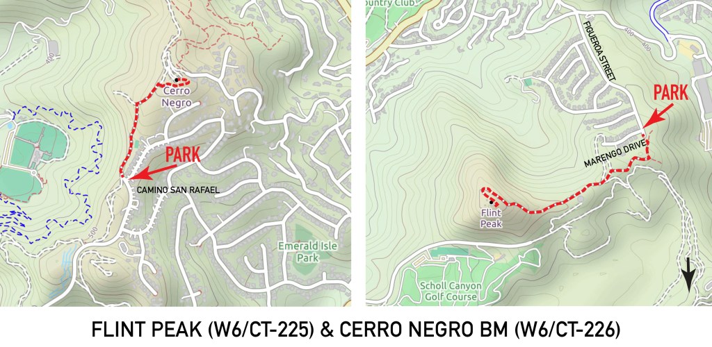 The hike up to the Cerro Negro benchmark starts at the Ridge Motorway right next to 2564 Flintridge Drive in Glendale. The hike is about a third of a mile and goes up about 200′