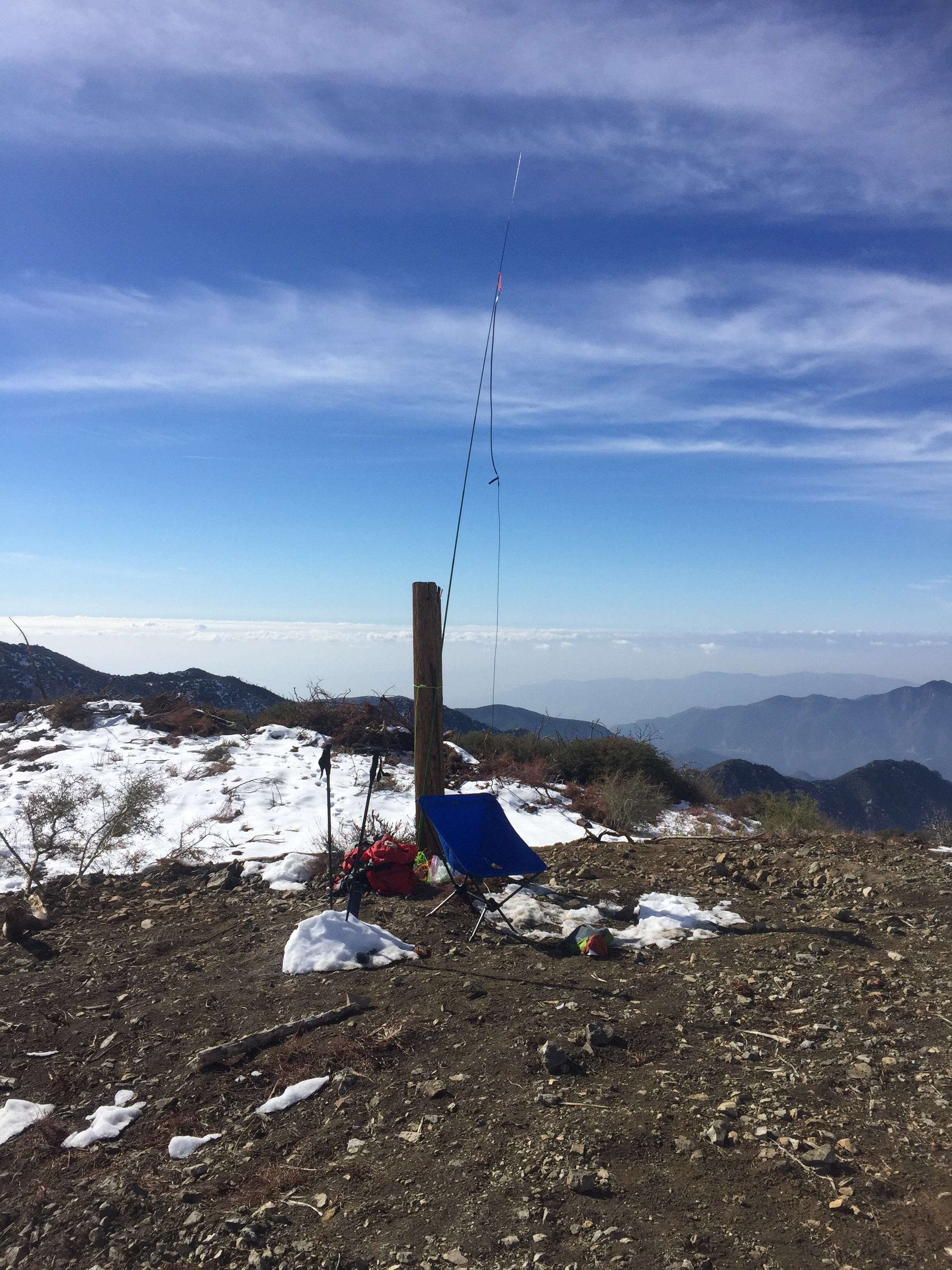 The summit of Lawlor was pretty ugly. It had been freshly bulldozed and the wreckage of burned out telephone poles gave off a heavy air of nasty creosote. I did get a pretty good pile-up on 2 meters and worked stations from San Diego to Santa Barbara.