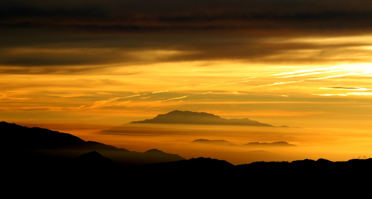 Sunrise over the stratus of the marine layer covering the Los Angeles Basin