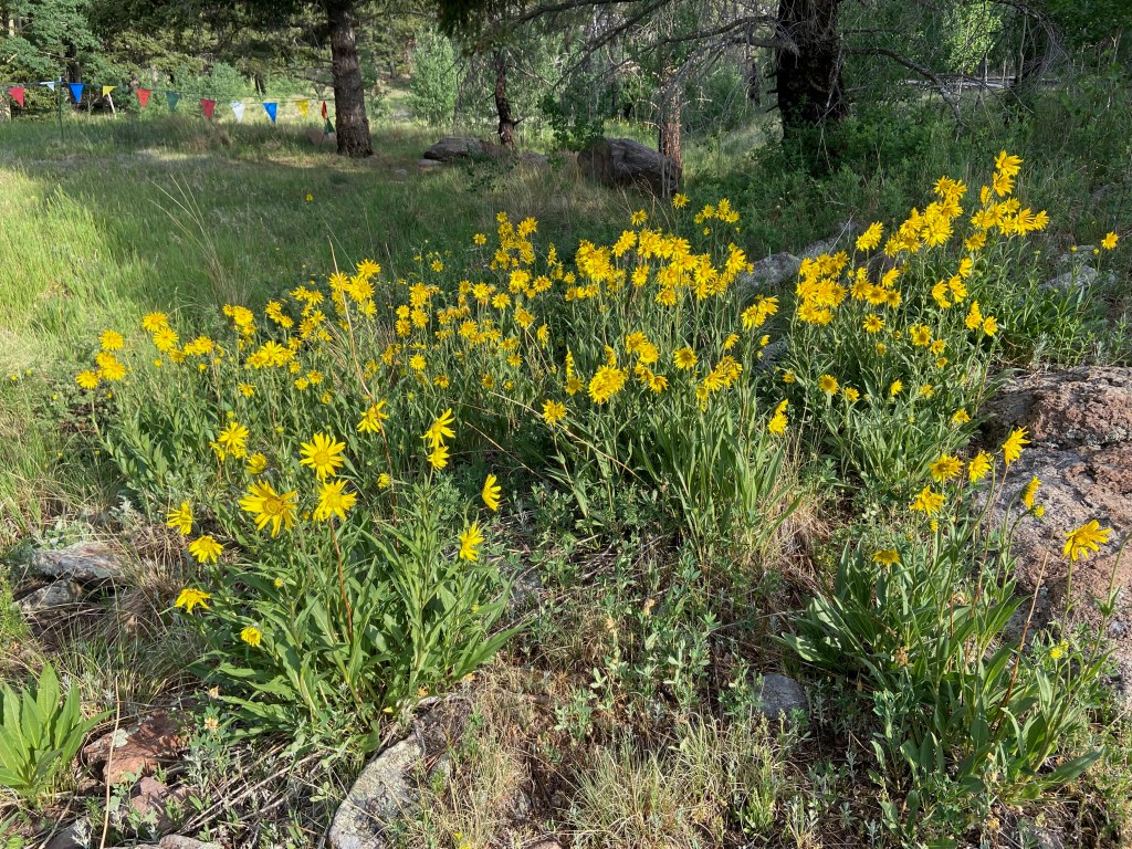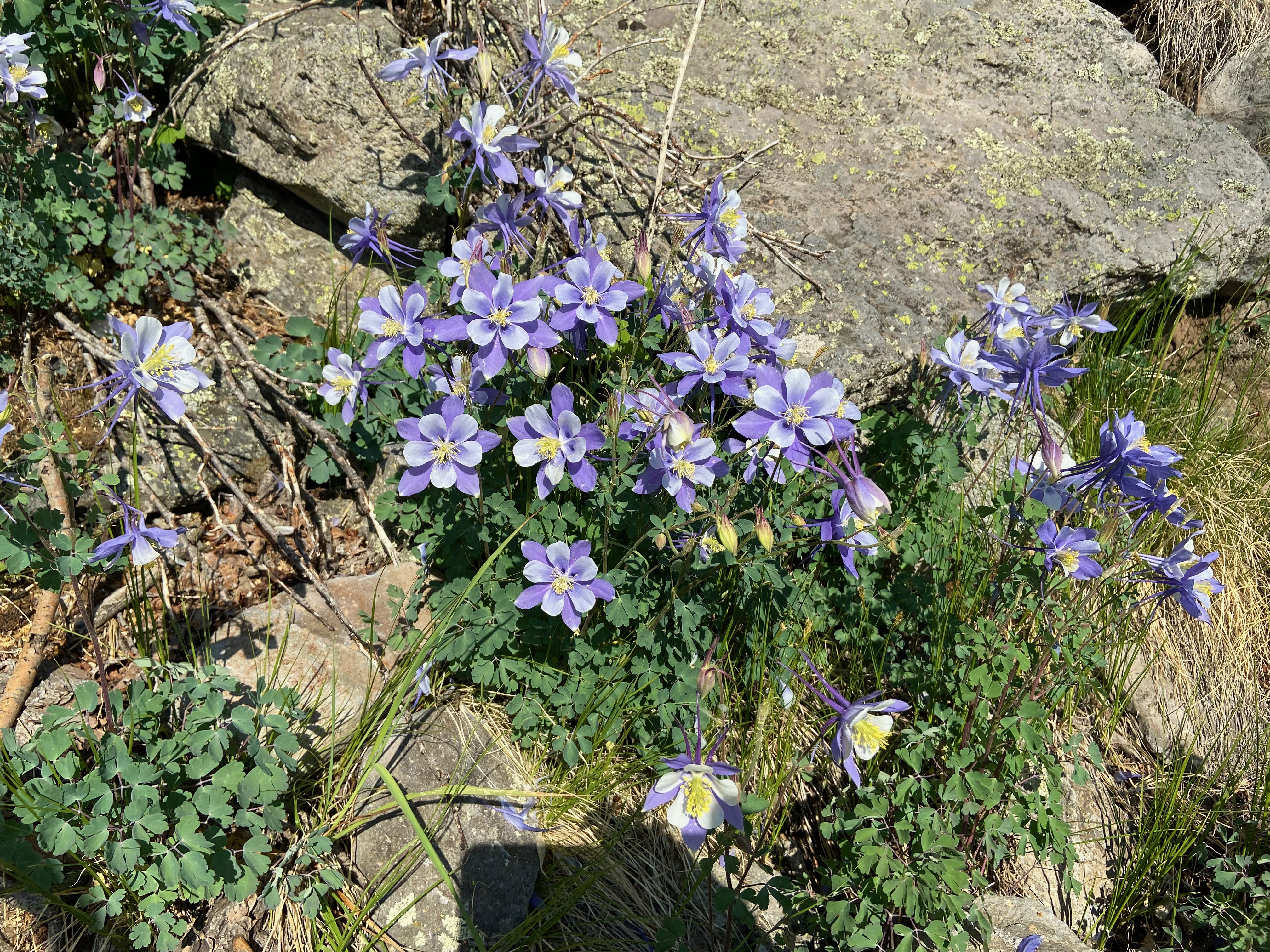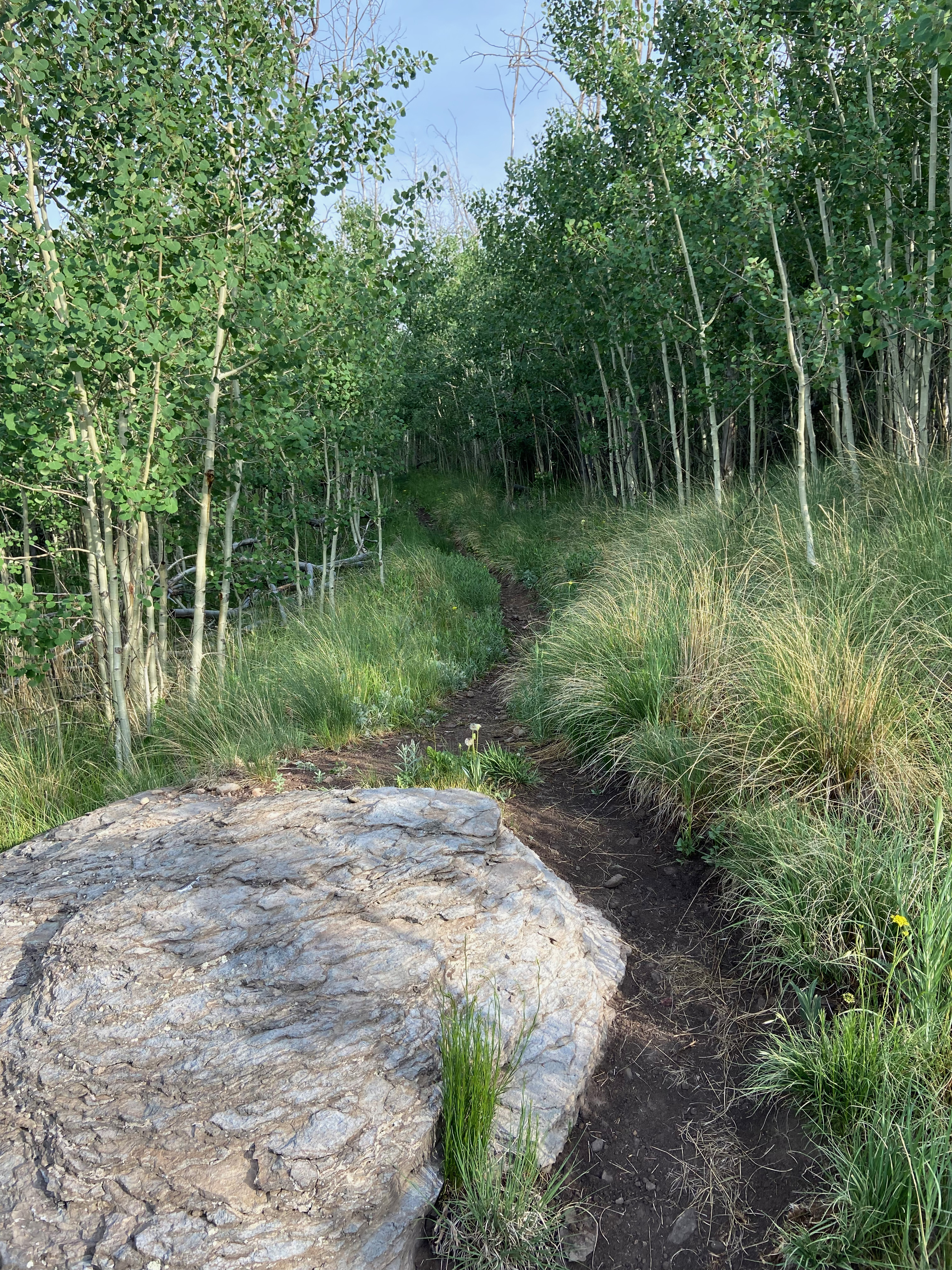 So it was a pleasant surprise to find a gently climbing trail through alternating bands of aspen and wildflowers to a wooded summit with a great view to the west and no radio towers anywhere in sight! I followed a cross country ski track called Half Aspen up from the end of Camp May. There was ample free parking there. This route added probably a mile or so, but I really didn’t mind as I am conditioning for the John Muir Trail in a few weeks. This route is 2.25 miles with about 1,000′ of elevation gain.