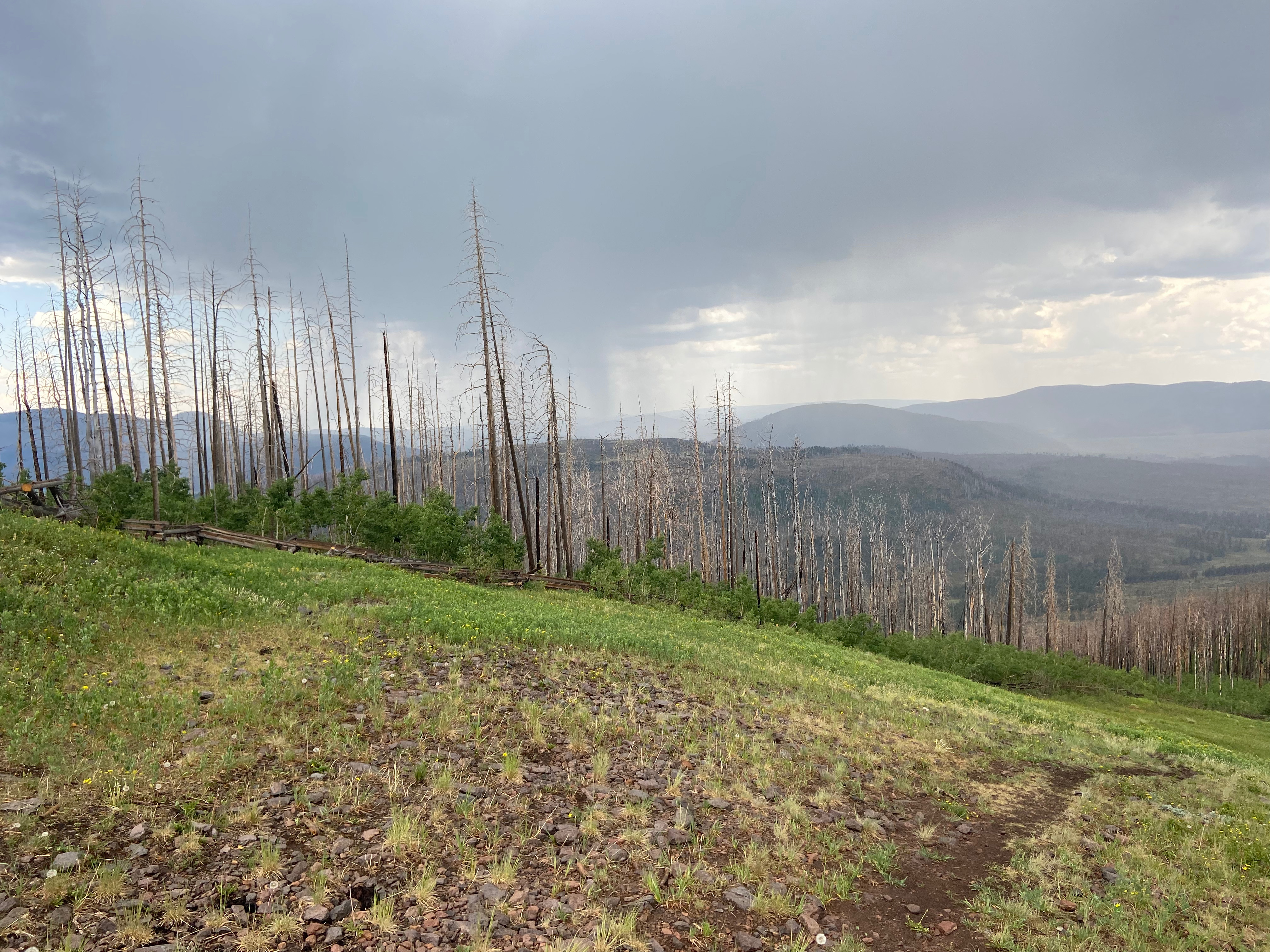 I chose a bit more direct path down as the lightning got closer and I got wetter.