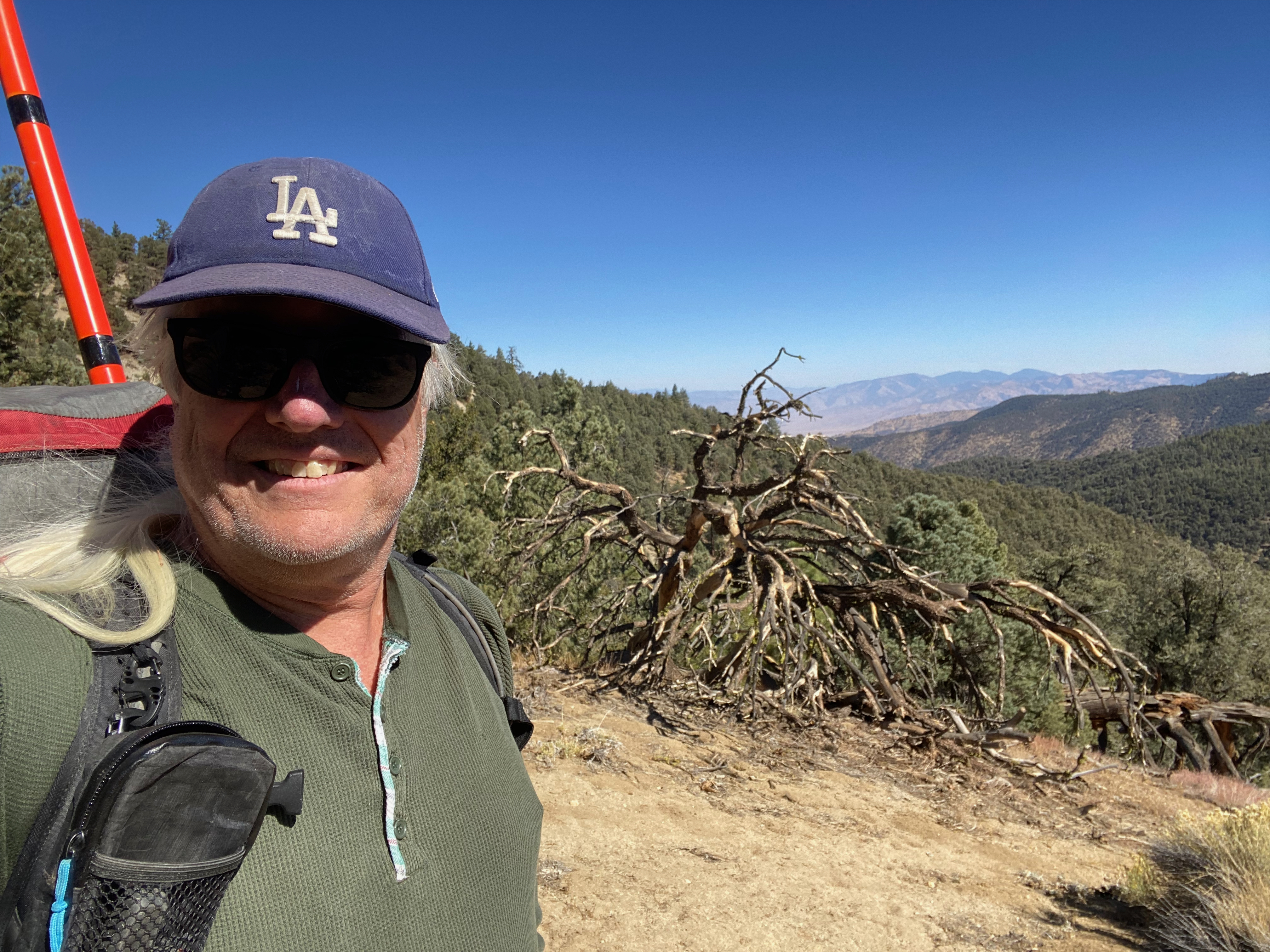 A couple of mild cautions though. Deer hunting season runs October 12th through November 10th, so this wasn’t probably the best time to do this hike, although the weather was perfect and I only heard very distant gunshot reports. Secondly, this is a very forested hike that follows a tenuous old jeep track. With visual landmarks obscured and a bit of dead-fall blocking this track, it isn’t too hard to get off-route as I did on the way down. My detour added a mile or so and I had to climb back up 500′. So route-finding is a bit of an issue and the potential to end up in the wrong watershed exists.
