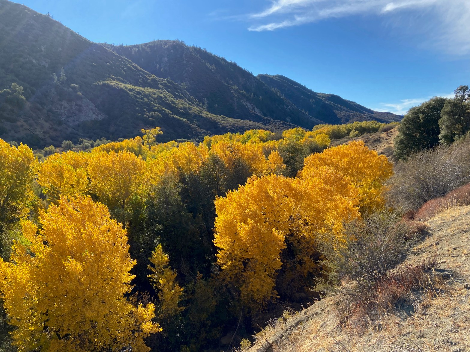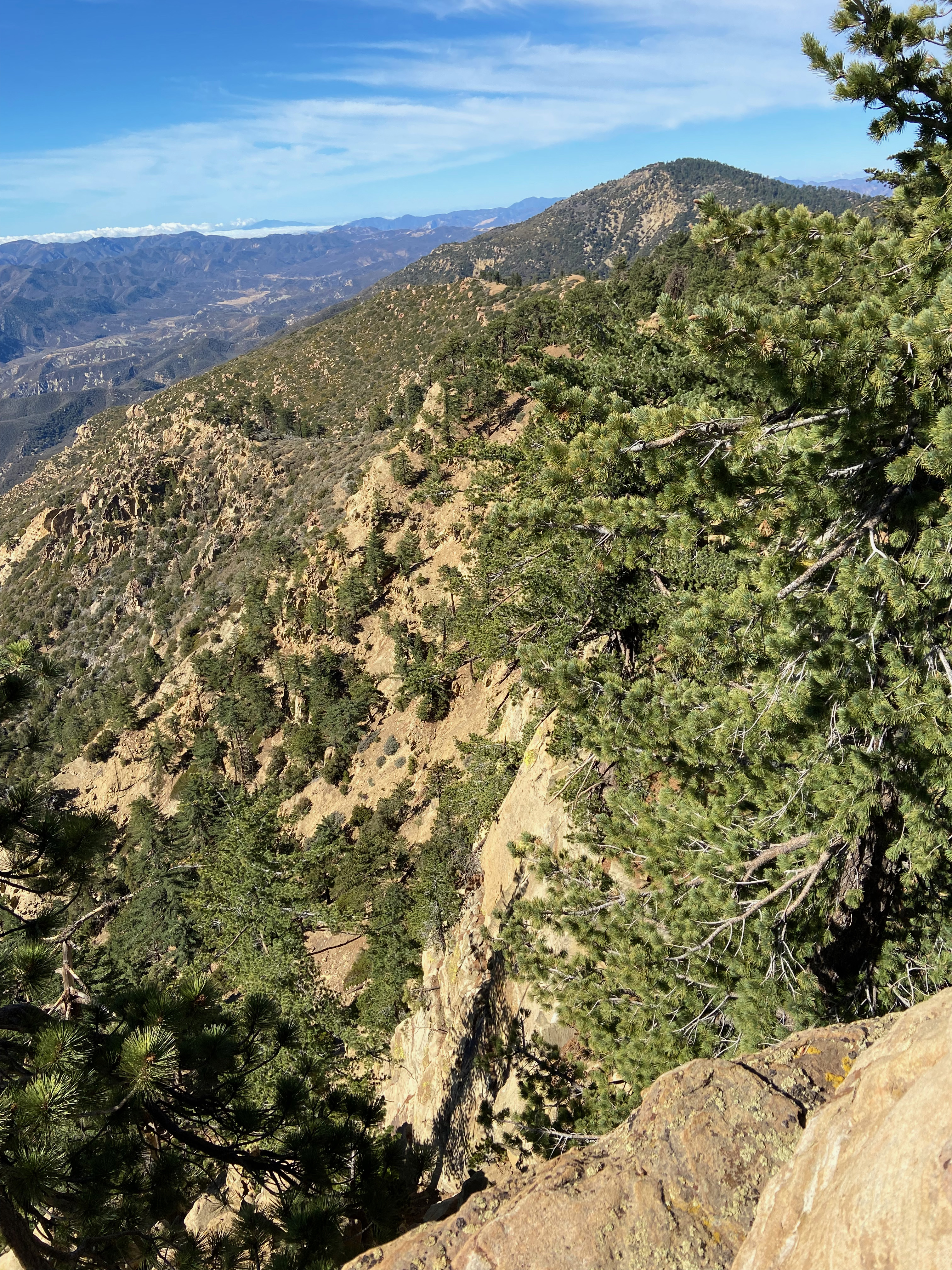 This trip took a lot longer than I planned. I left Topanga at about 4 AM in a thick drizzle. As I slowly made my way through Calabasas, Agoura and Thousand Oaks it became a steady rain. This slowed me down a bit and it took me two and a half hours to reach the trail head. It was sunny and clear and a bit breezy when I left the car. Deer season was in full swing and there were lots of hunters camped at the Pine Mountain campground. I was a bit worried about being mistaken for a deer as I started out, but I hoped my bright orange Jackite pole would flag me as not very tasty eating. Turns out I had nothing to worry about. The early morning crowd of hunters — and I saw quite a few — seemed to be quite skilled. I only heard 4 rifle reports all day. More Robert De Niro than John Cazale 🙂