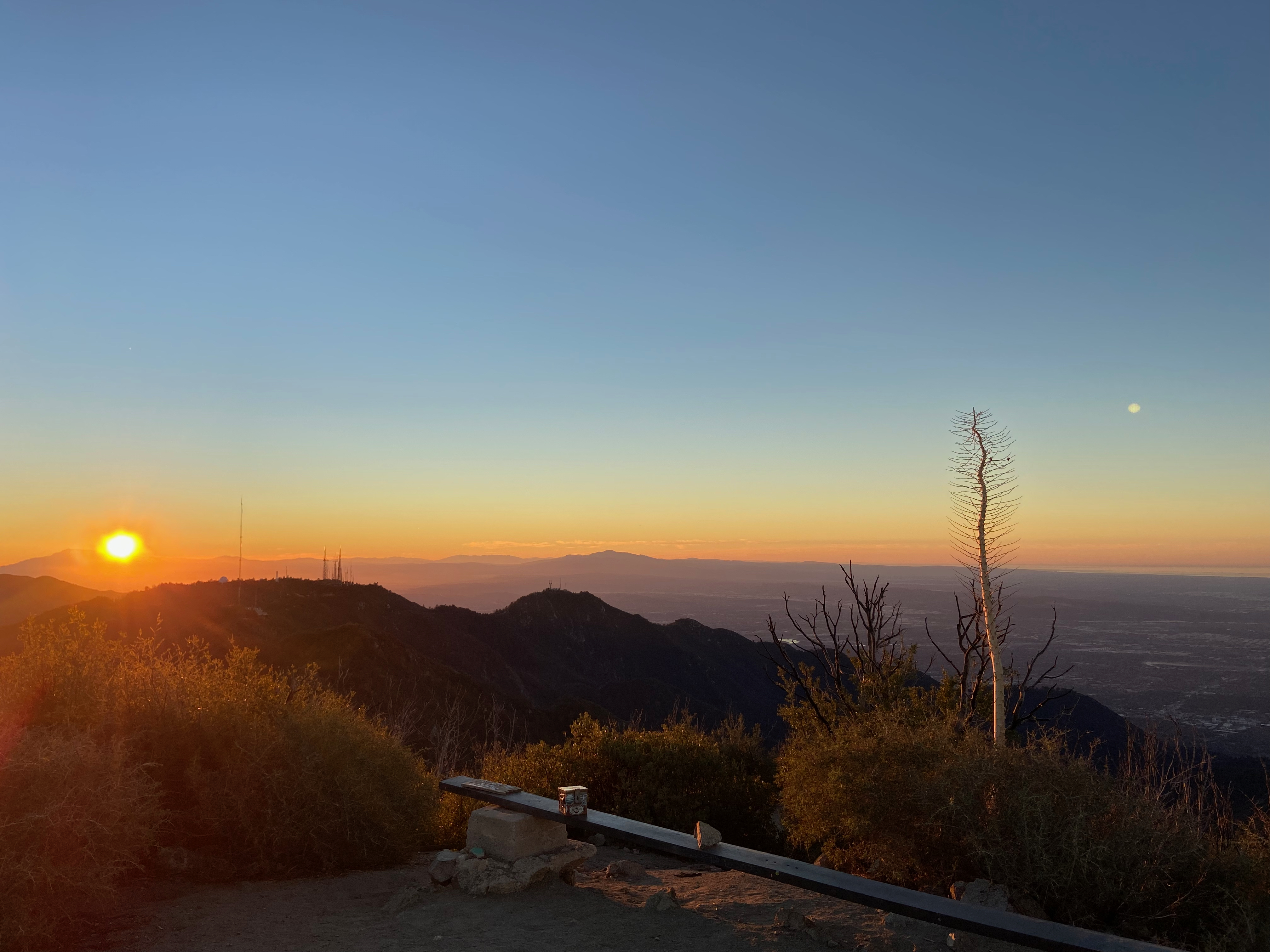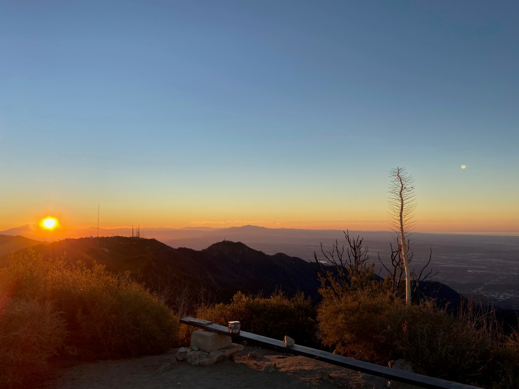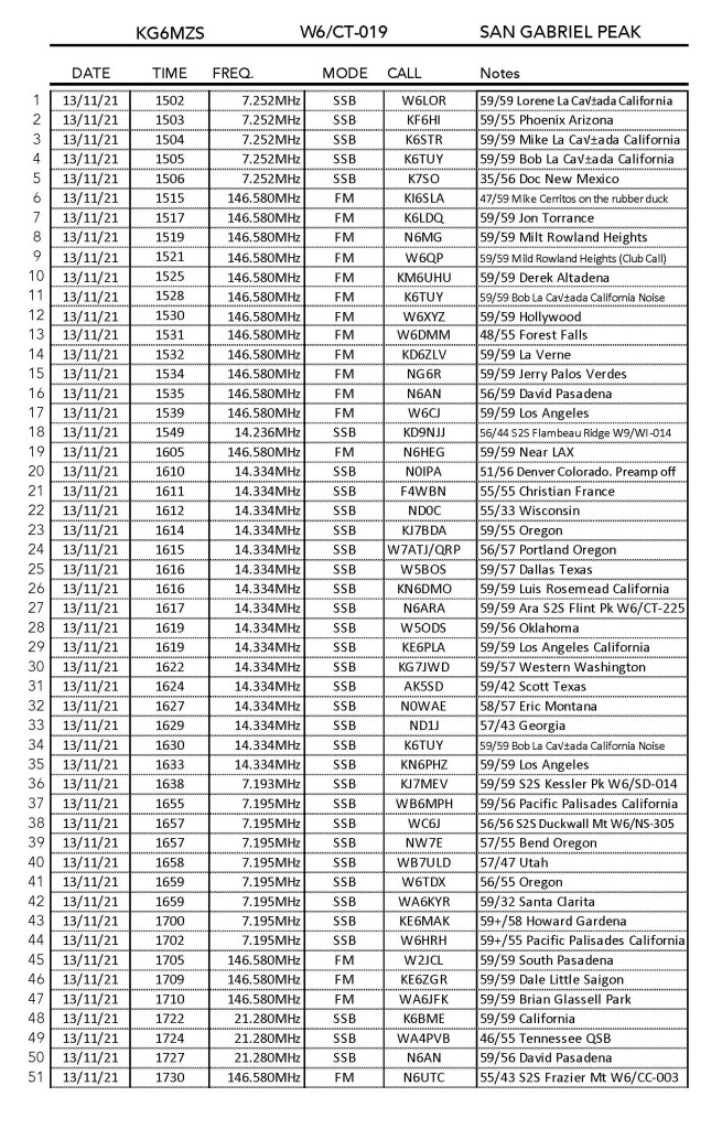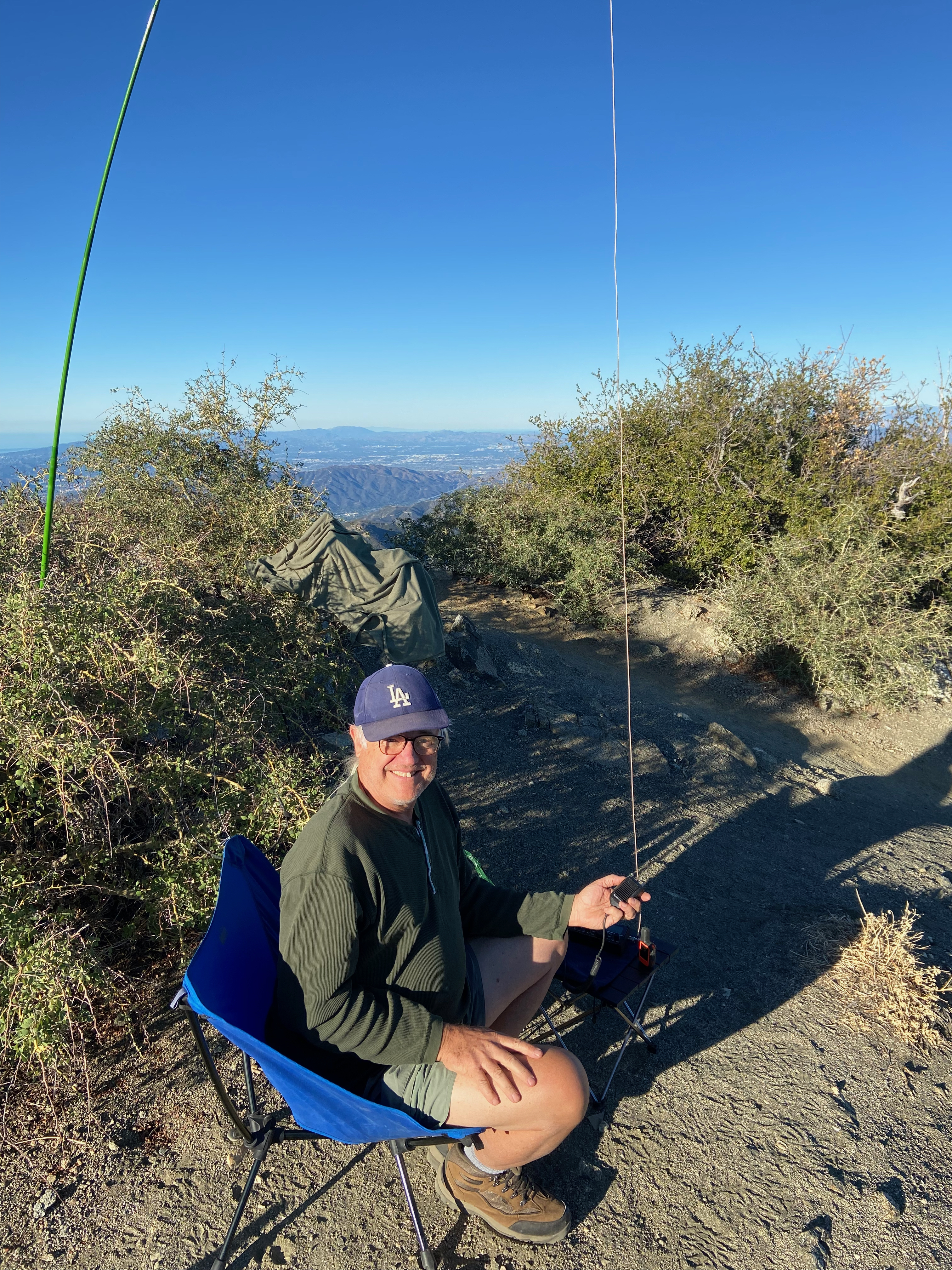 Cell coverage from Verizon was in and out but I did manage to get spots out via SOTAGoat eventually. I made 30 contacts – a record for me in my short SOTA career. I was the first one to the summit on this fine morning. However a number of other parties visited this popular mountain top during my two hour activation. I handed out a lot of SOTA cards to interested people. Perhaps even better than my first summit-to-summit with Wisconsin, even better than a DX QSO with Christian in France, was connecting with David N6AN and arranging to meet for the first time in La Cañada for a cuppa. I really got a kick out of meeting David as we have had many S2S QSOs.