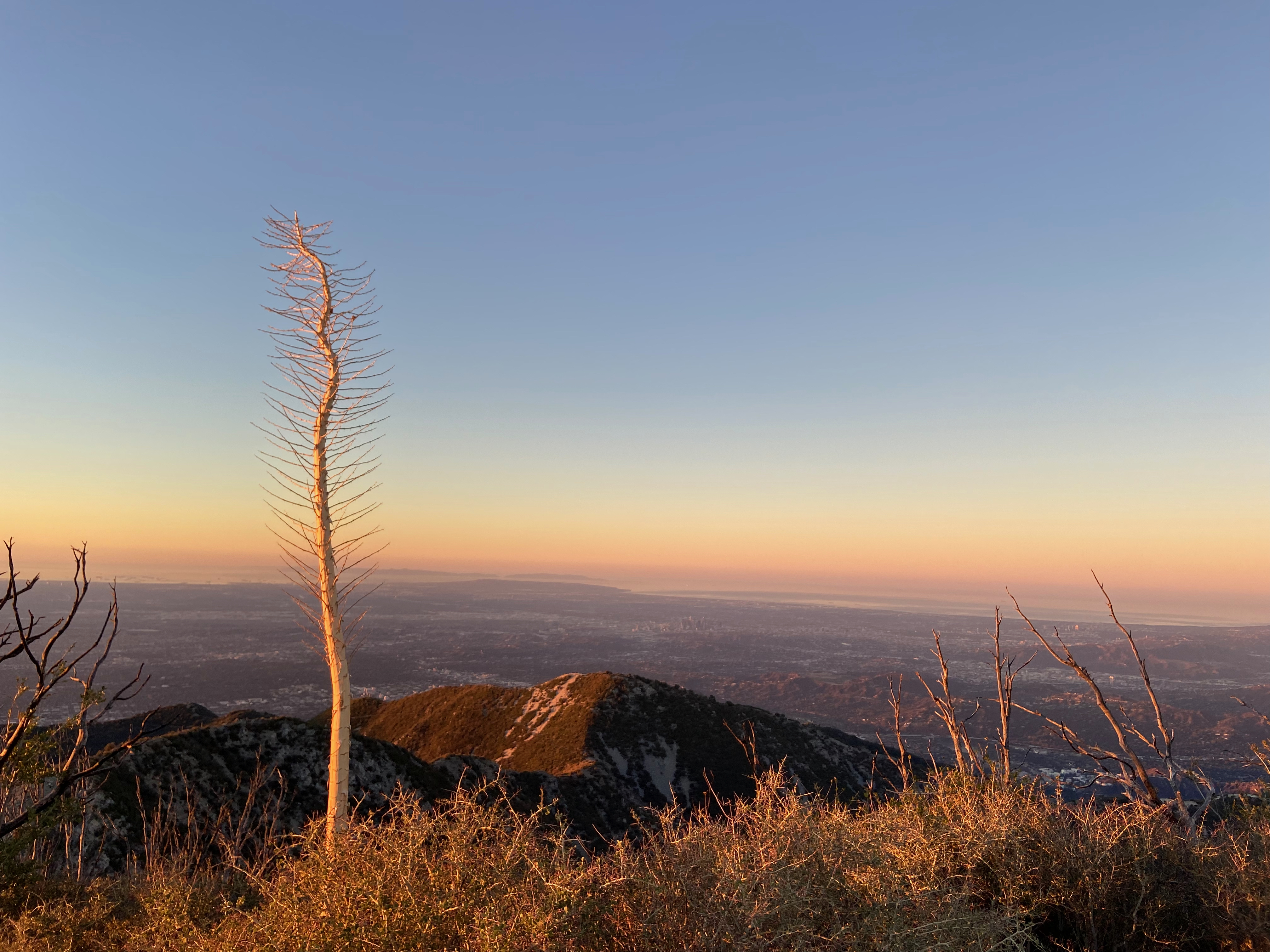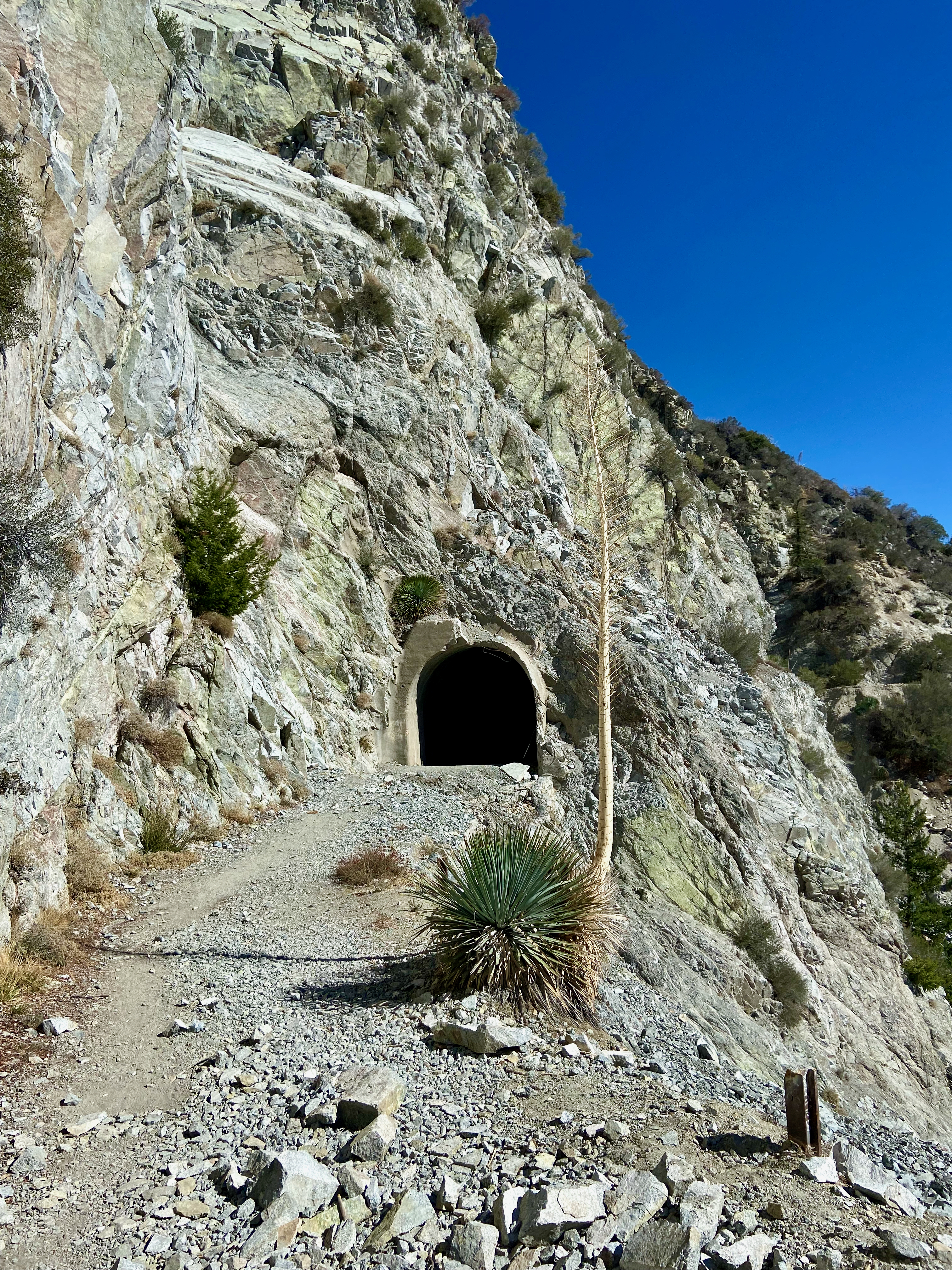 This was my fourth trip up San Gabriel Peak. I first hiked to this grand summit over 40 years ago with my friend Linnea Gardner. I left Topanga well before dawn to get to Eaton Saddle at 5:30 AM. I started out in the glow of the city lights far below, but was obliged to get the headlamp out to go through Mueller Tunnel shortly after starting out. It was a little spooky.