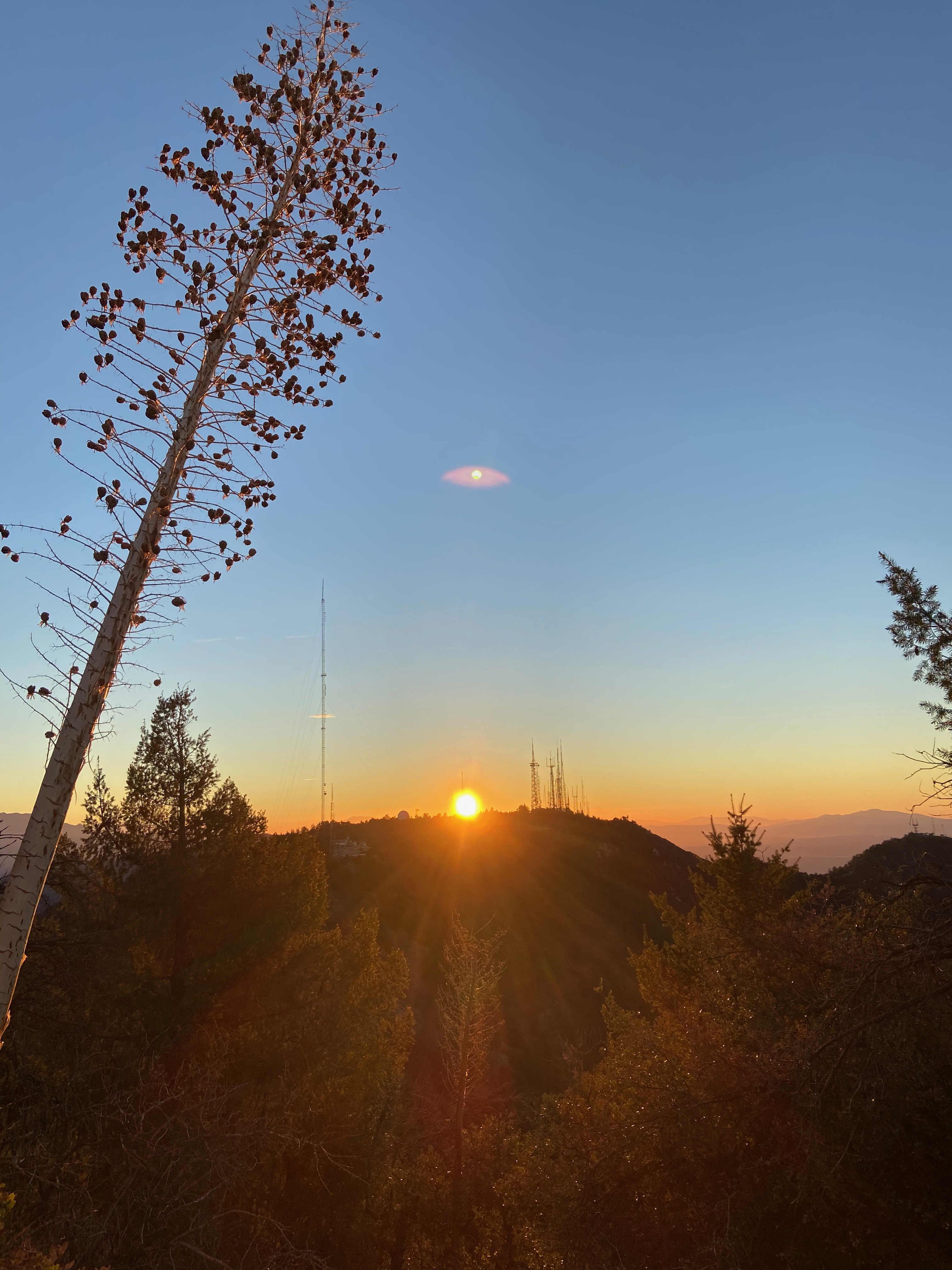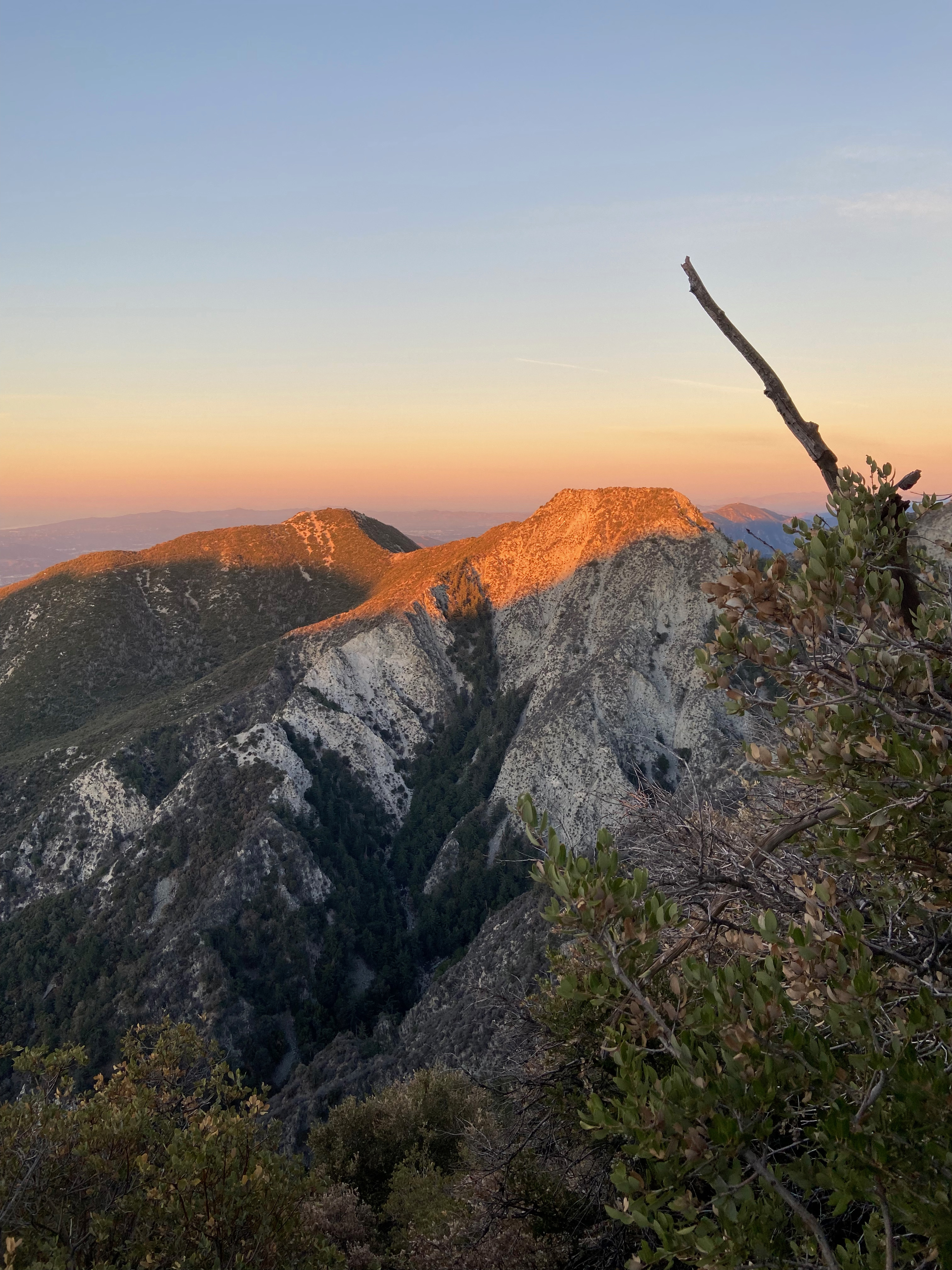 I love heading out my driveway in the predawn hours off to another summit adventure. This Saturday morning it was 62ºF in my driveway and by the time I was only a few miles into the deepest part of Topanga Canyon it was 38ºF and the little snowflake icon on the dash of Pfeffernusse had lit up. Canyon temperature inversions are not uncommon, but a 24 degree inversion is pretty steep.