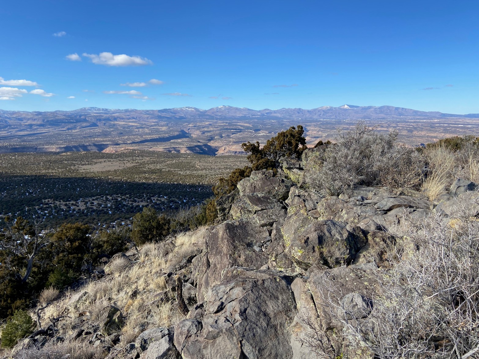 I race to this second summit of the day to catch a summit-to-summit with NM5S back on Ortiz Mountain.