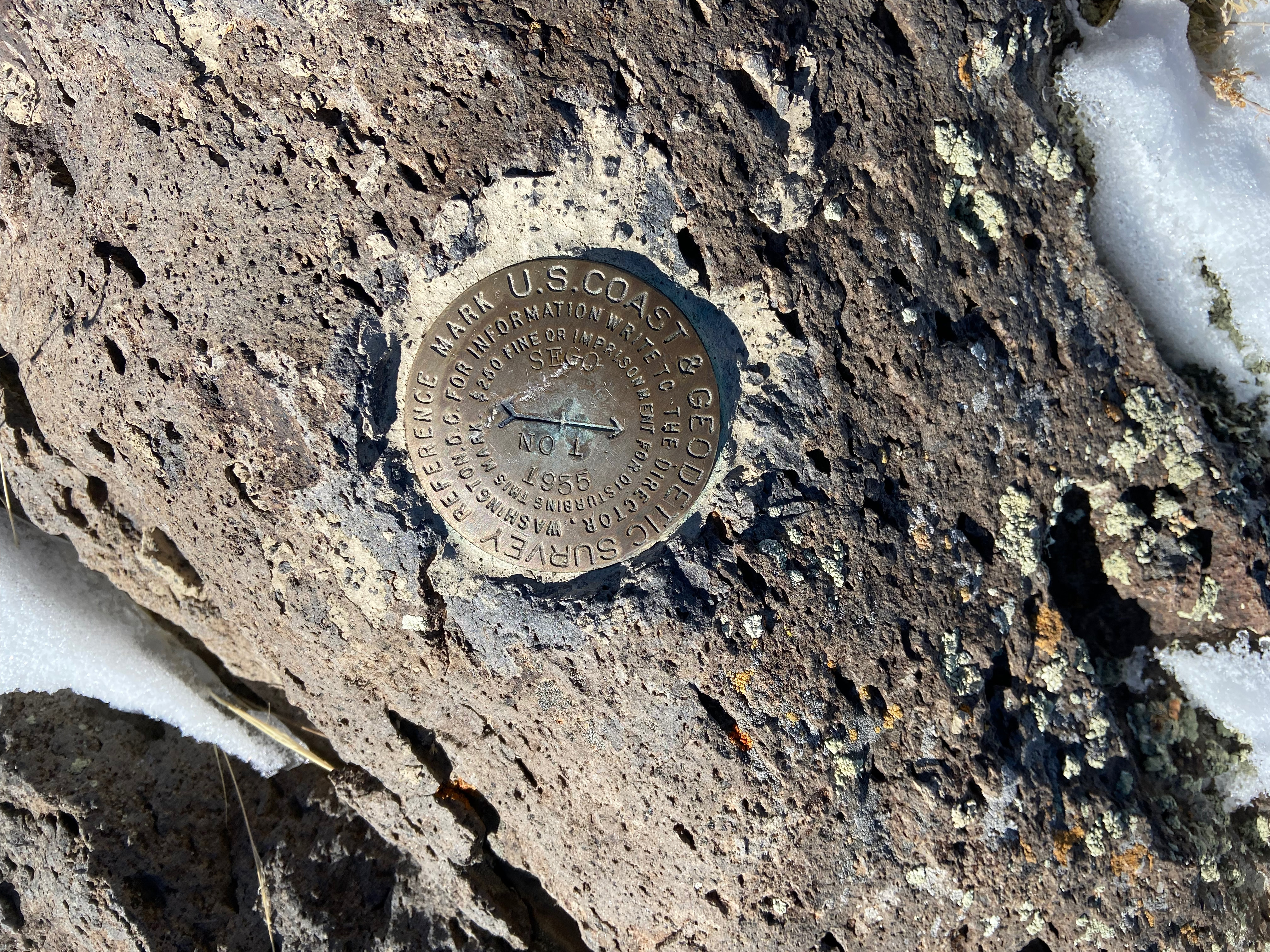 The hike is over two and a half miles and gains about 1,400 feet. There was over a foot of snow by the time I made the summit ridge. The various odd-shaped volcanic detritus buried in this snow made each step an adventure.