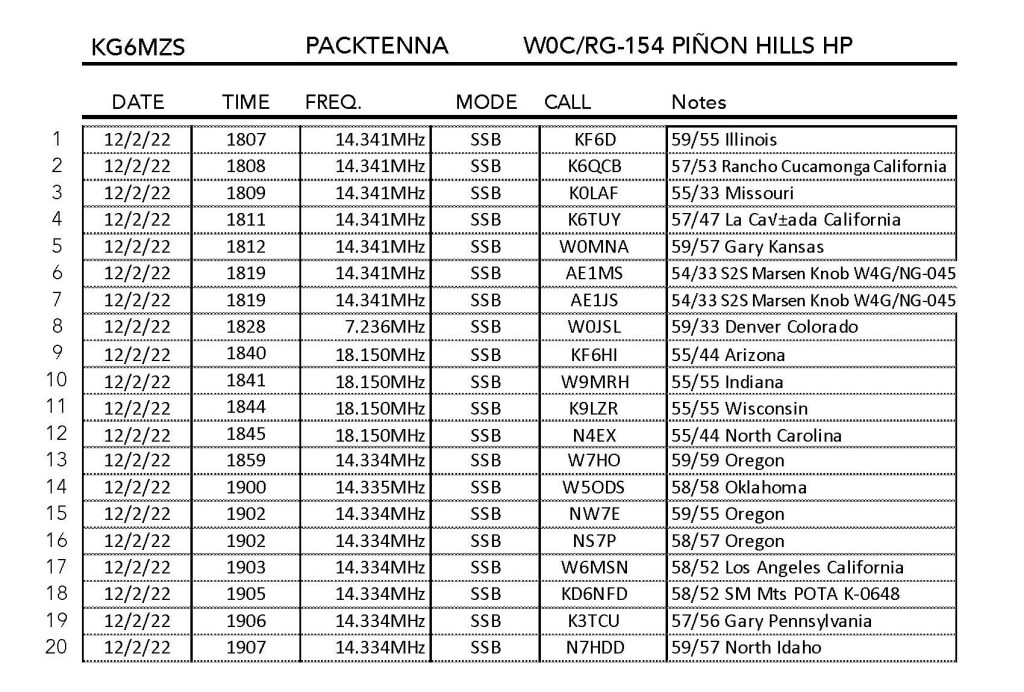 After calling my first CQ I heard my most faithful chaser, Jon K6LDQ. Unfortunately he couldn’t seem to hear me. I did get a call from AE1MS and AE1JS on Marsen Knob in Georgia. I also heard from my home QTH and a POTA caller KD6NFD in the Santa Monica Mountains National Recreation Area