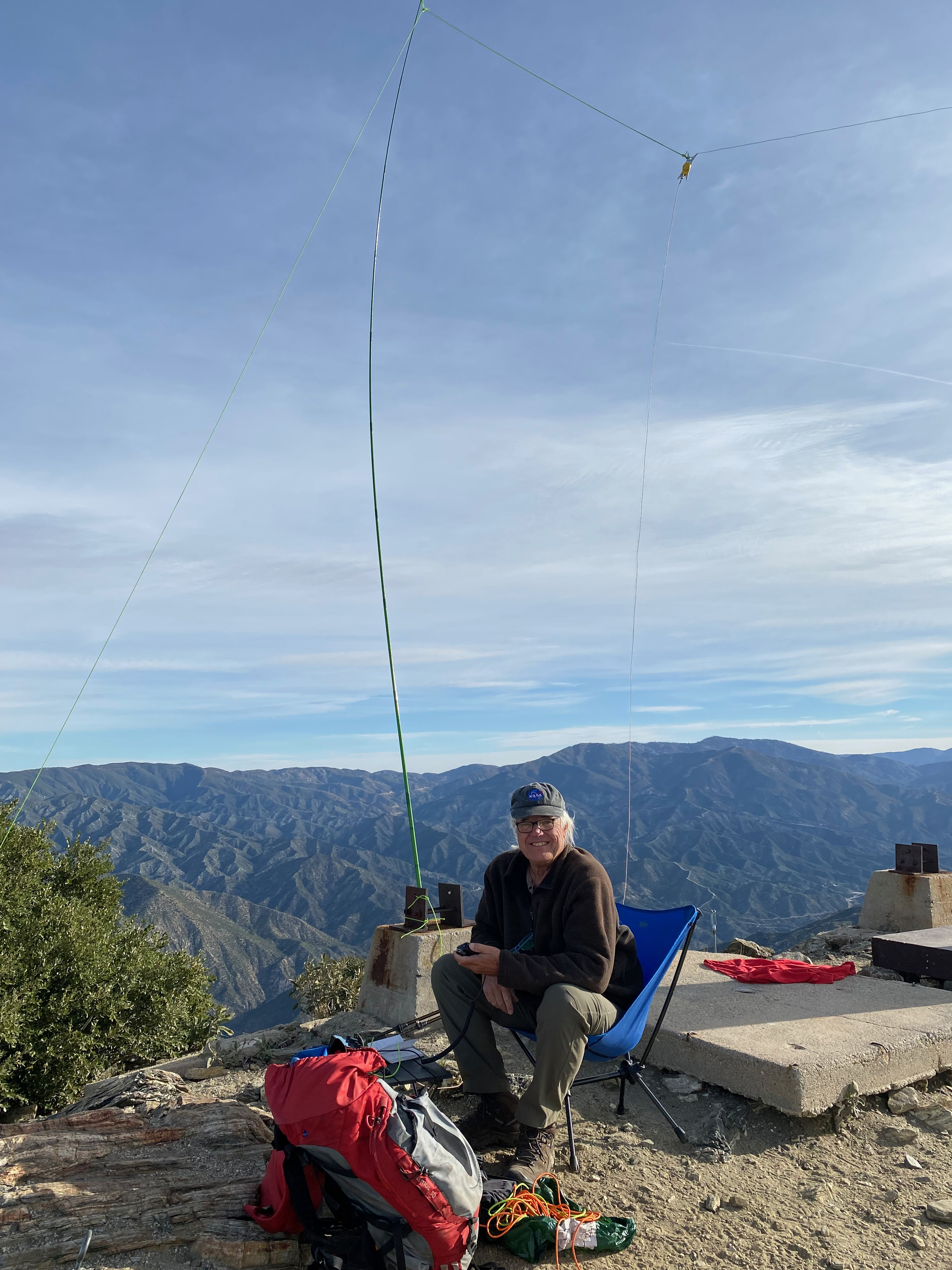 I has the summit to myself for a little while to set up the station but soon hikers began to arrive. This was a very busy Sunday on the mountain. I handed out a record number of my SOTA cards and received quite a few visits to this site as a result. Thank you all hikers for putting up with the various antenna wires and guys and my radio chatter.