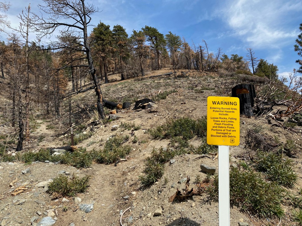 This area just opened after the Bobcat Fire area closures a day before and the whole area is still showing the devastating effects of that fire and the 2020-2021 drought year. Many trees are fully dead and I saw some trees that had green growth the had snapped off and blown over because of their weakened trunks.