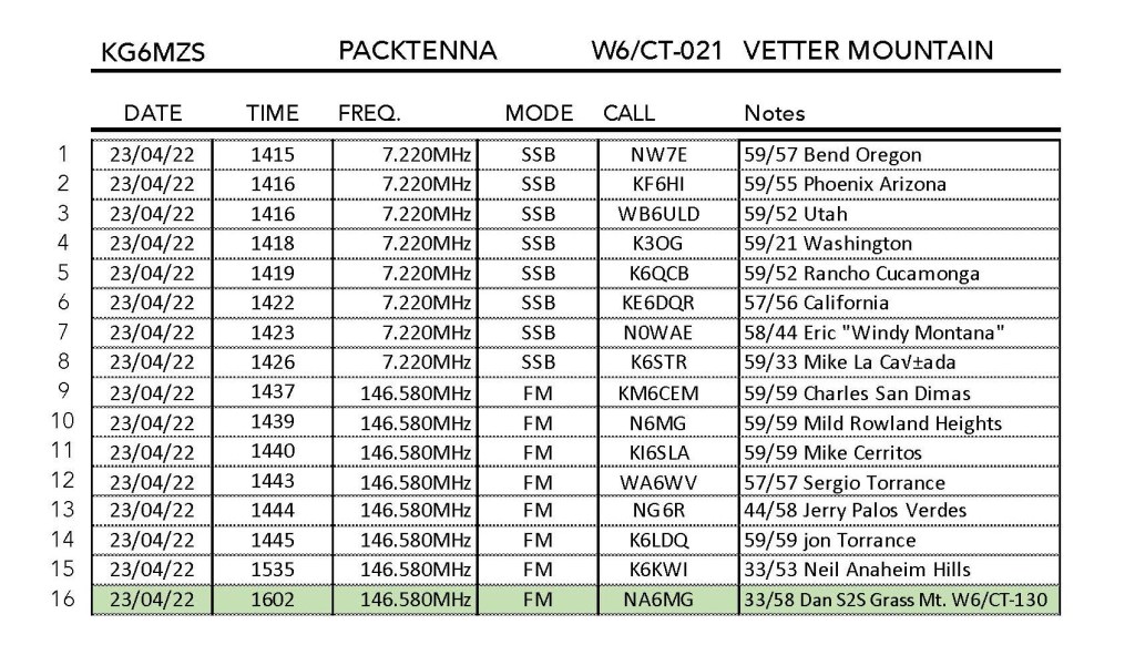 I’m writing this over three years later. I first did this hike with Cassie’s sister Deborah back on April 15, 1995. This was obviously a very early morning trip. One standout from this trip was that I bumped into Ara N6ARA on the way back.
