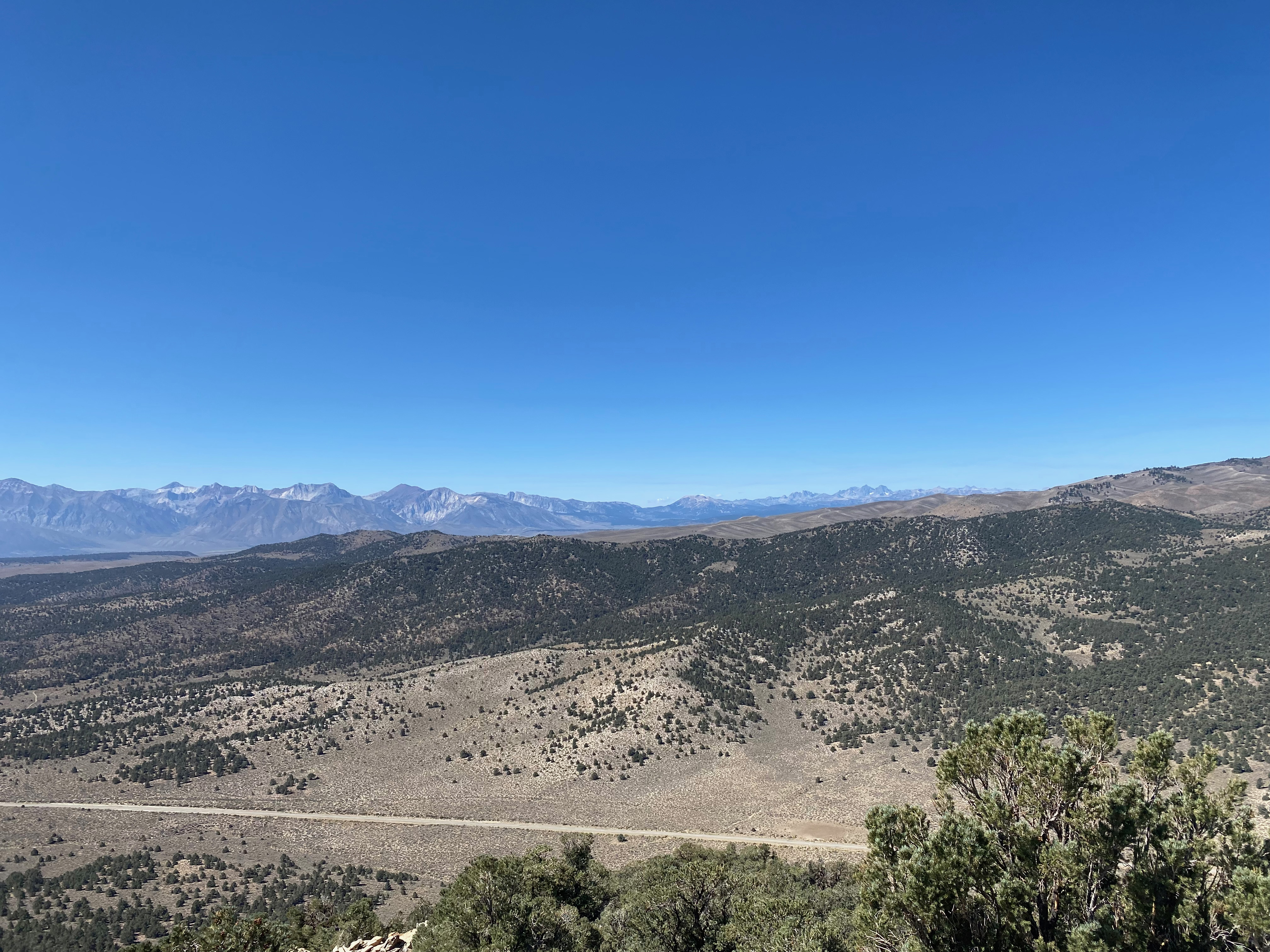 The hike is up a moderately steep hill that is pretty easy to navigate. I was rewarded with a terrific view of the Sierra Nevada from the Palisades to Yosemite. The register went back to 1967! I got very nostalgic recalling all my family’s pilgrimages to an isolated cabin on Twin Lakes out of Bridgeport back in the early sixties. What a different place 395 was back then.