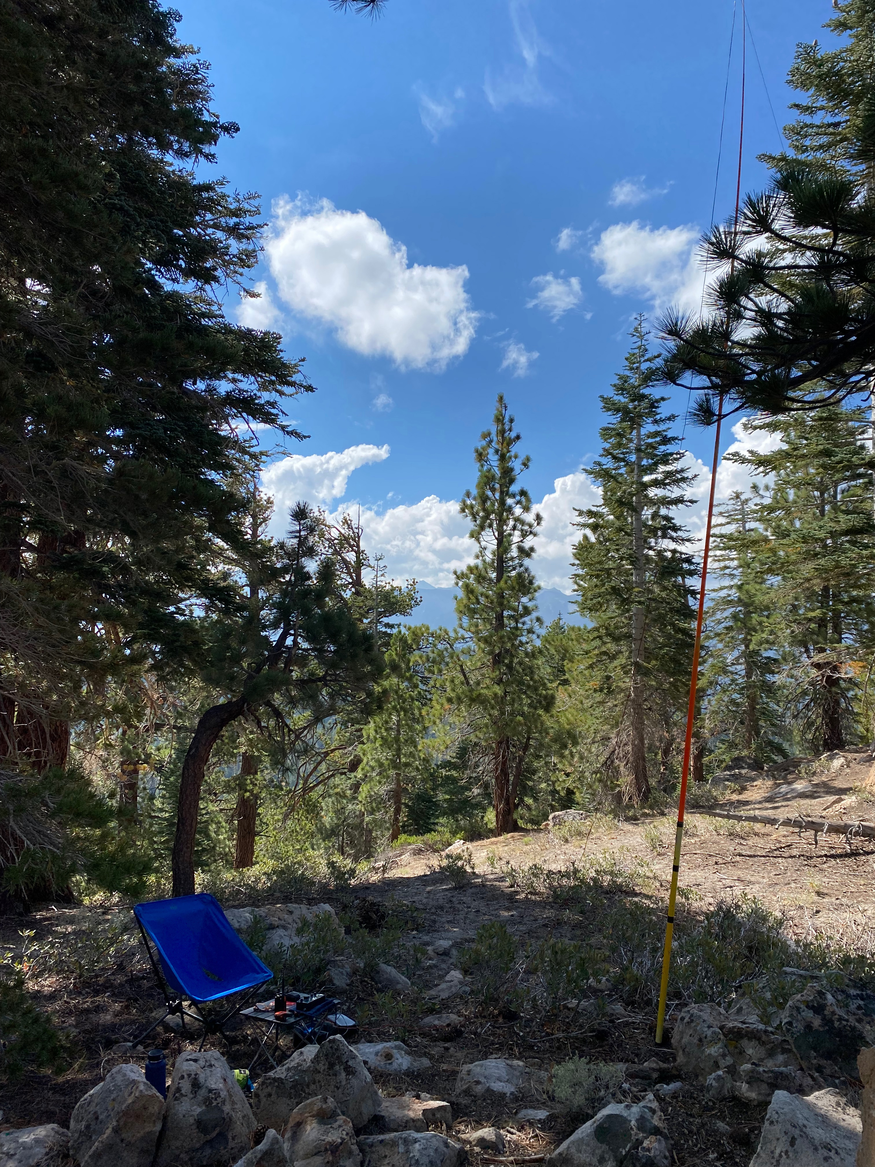 Radio conditions were okay with a surprise call from Lorene W6LOR and Mike K6STR just down the hill in Mammoth Lakes! They were on their way out and I was sorry to miss them. It would have been a perfect summit day to fly Chester, but I didn’t bring him along after the stormy weather had kept him grounded on the previous two summits the day before.