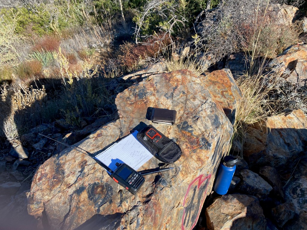 I did have my Yaesu FT5D with me. That saved the day. I filled a reusable shopping bag with my water bottle a pencil and a few pages ripped out of my Topanga Survival Guide for a makeshift logbook.