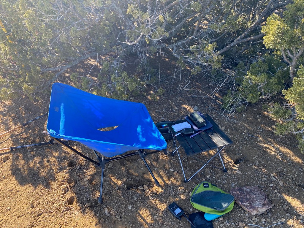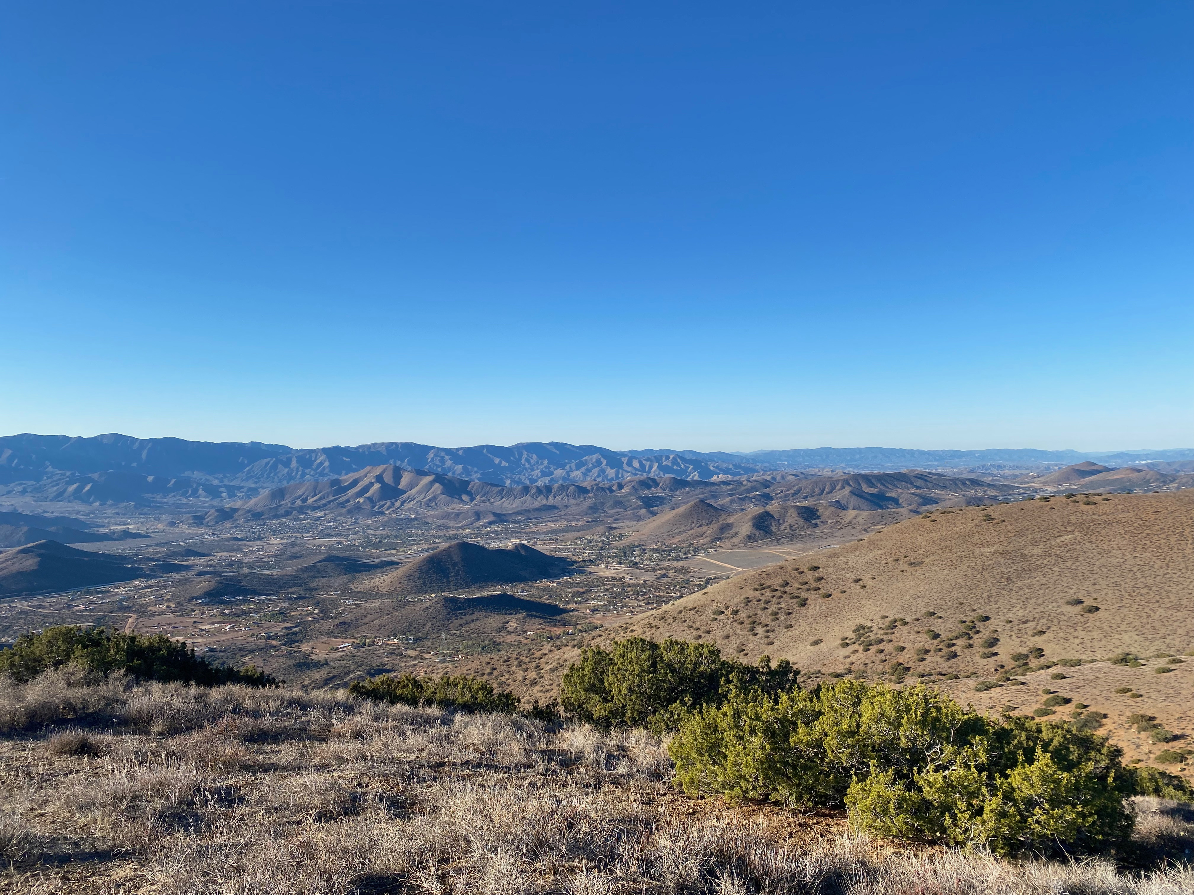 Whitedog at the trailhead. That’s Sierra Pelona in the background.