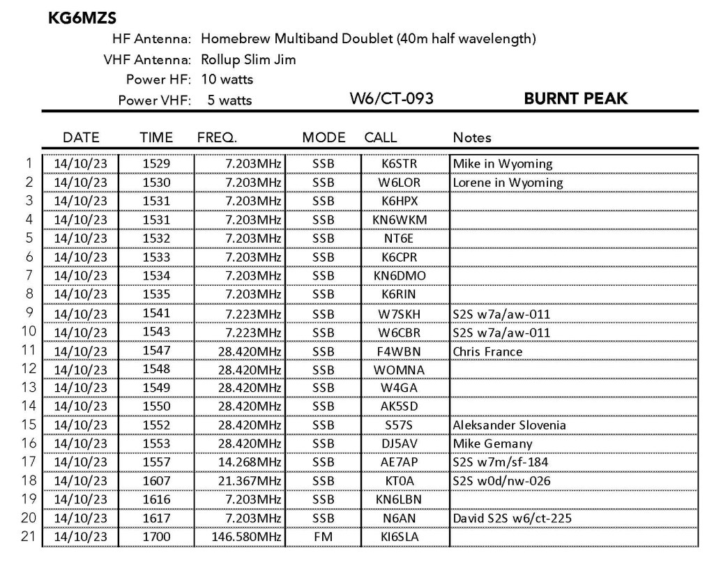 Radio conditions were excellent – especially on 10m where I worked Aleksander in Slovenia, Mike in Germany and, of course, Chris in France. I had 5 summit-to-summit contacts and even got Lorene W6LOR and Mike K6STR in Wyoming.