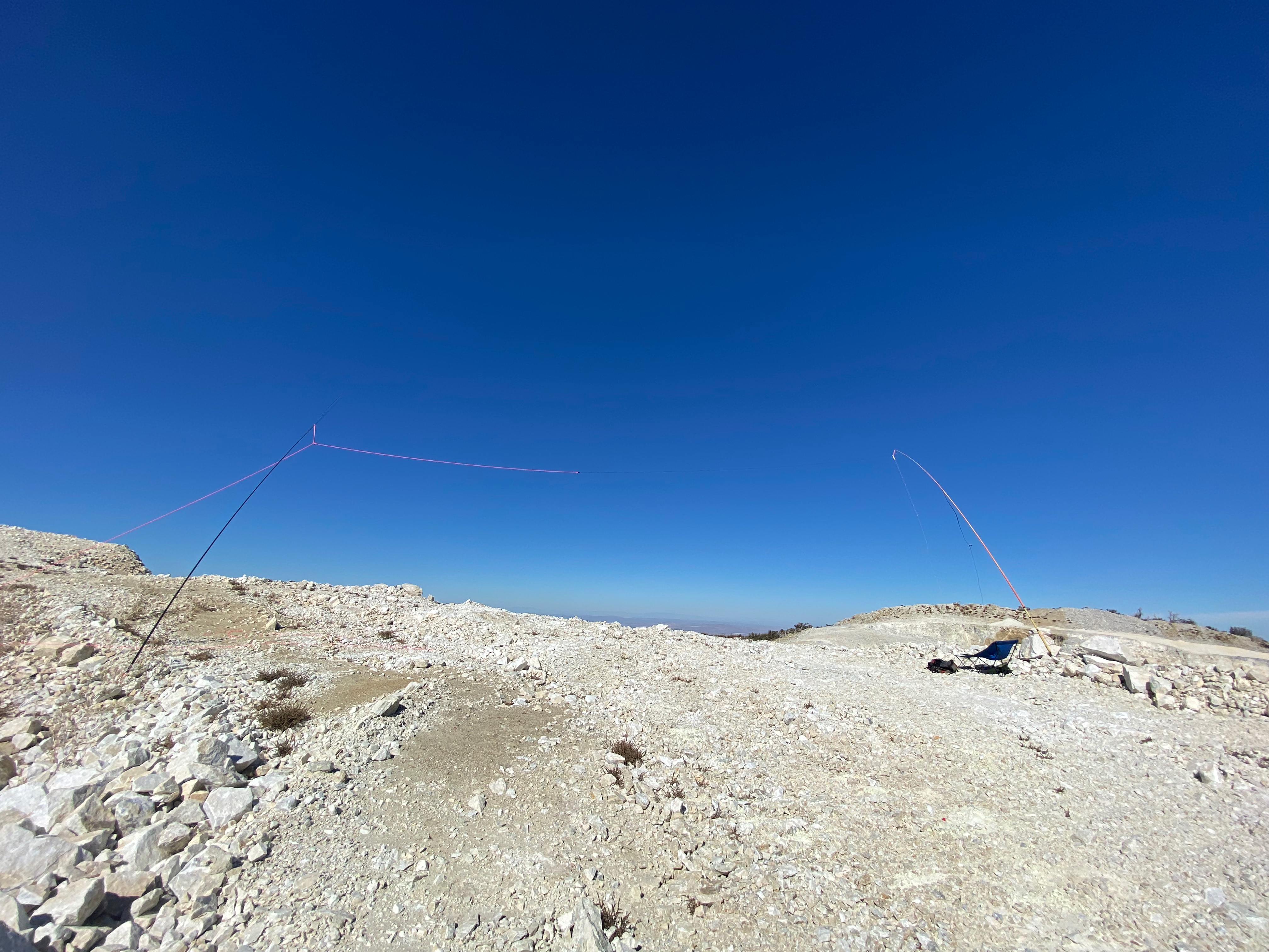 I followed the track posted on SOTLas by KX6I and the “short climb up a rockpile” is now a treacherous scramble up very loose powdered quartz. I spent 15 minutes or so carving out semi-stable steps to make the ridge. I don’t recommend this.