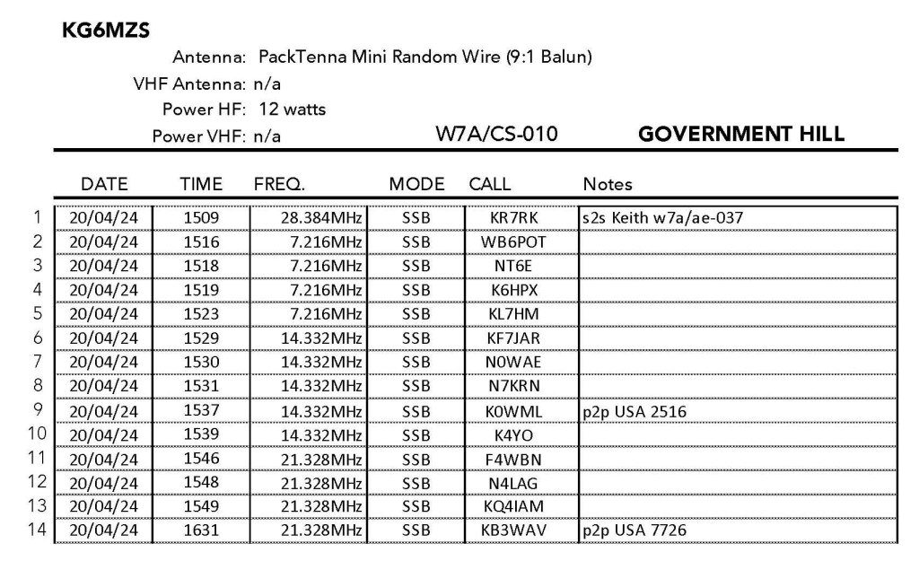 Strangely Government Hill is higher than Government Mountain by about 100′. The dirt road is a little bumpy but otherwise good. The hike is pretty straightforward — just head up the steep slope up and around a false summit to the right east. The false summit is just discontinuous from the activation zone – I checked.