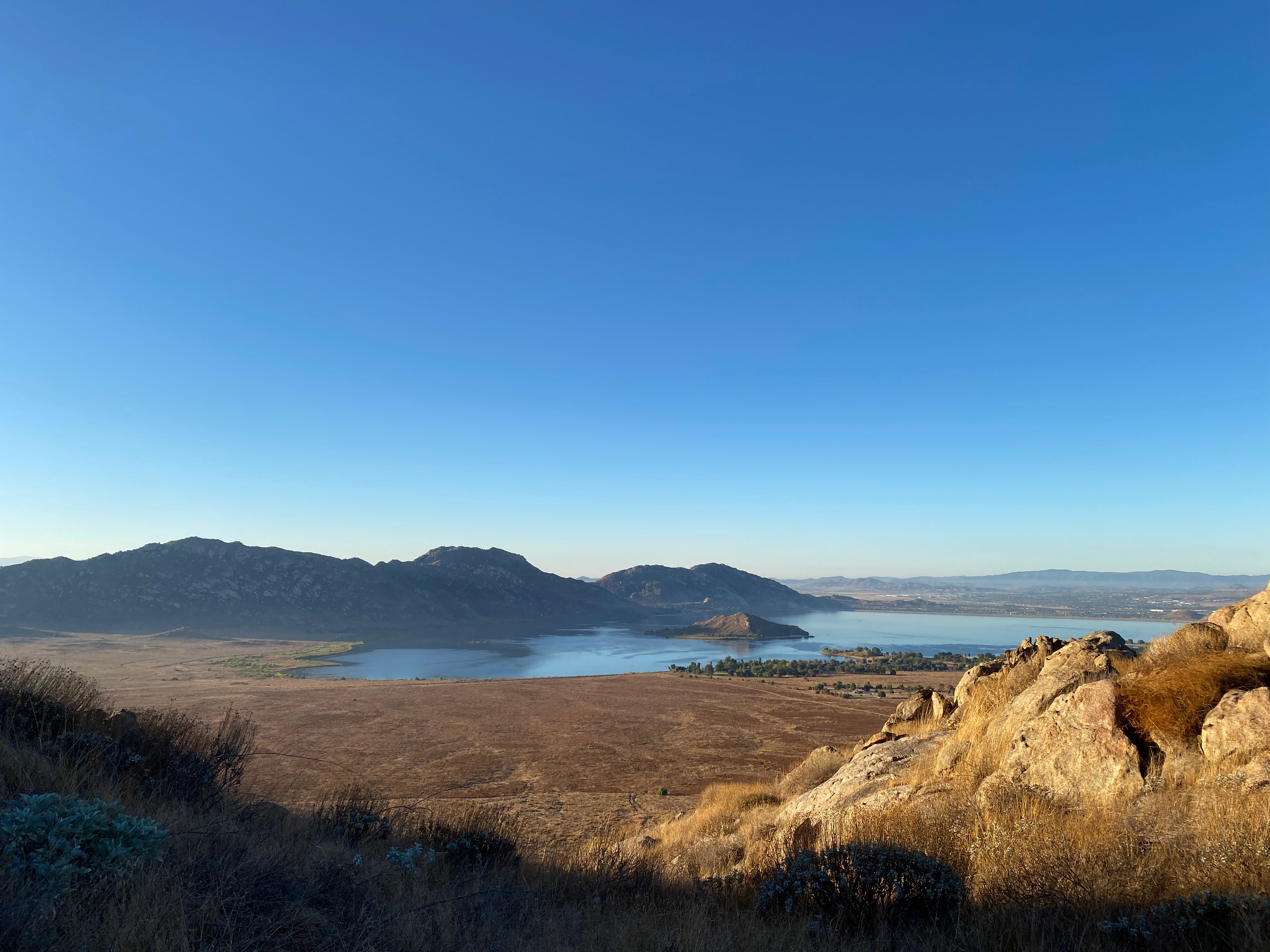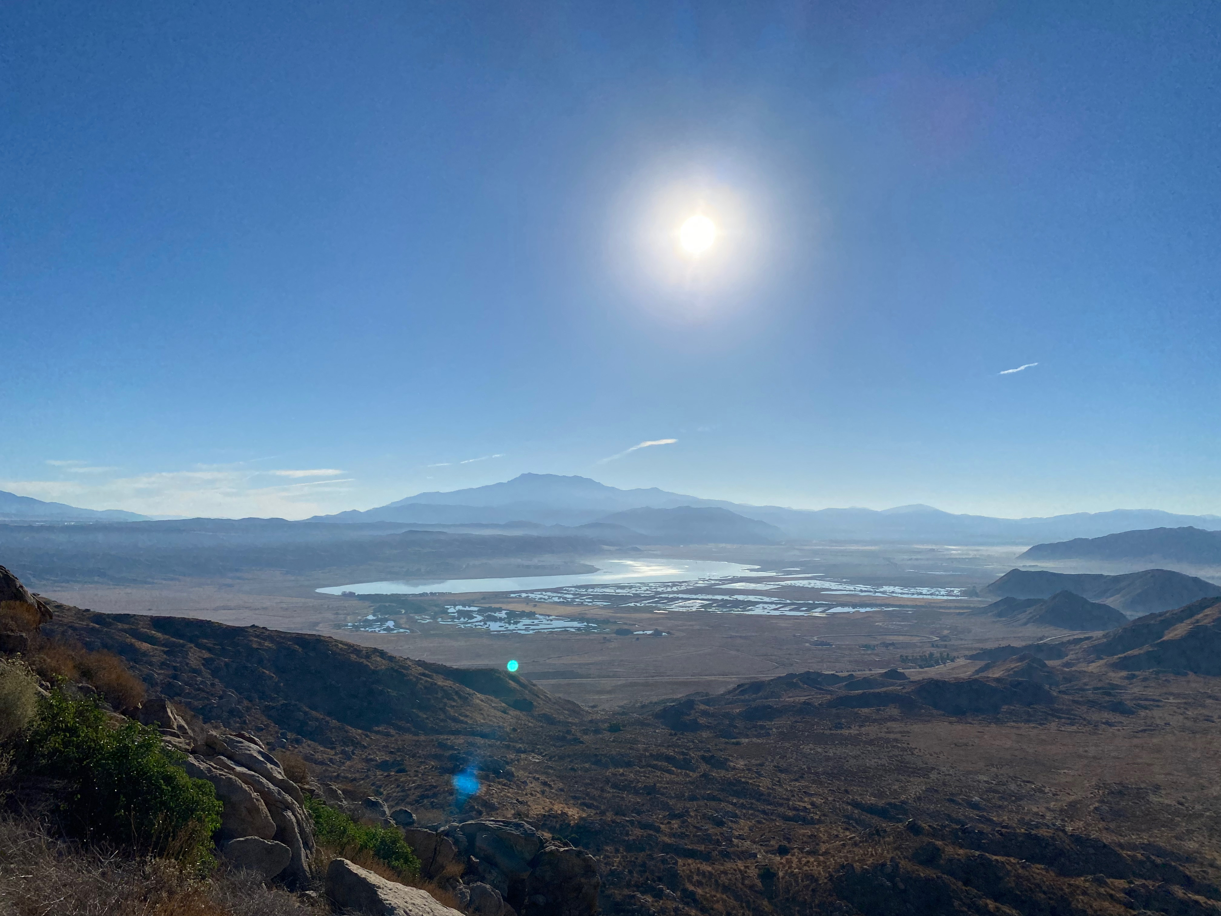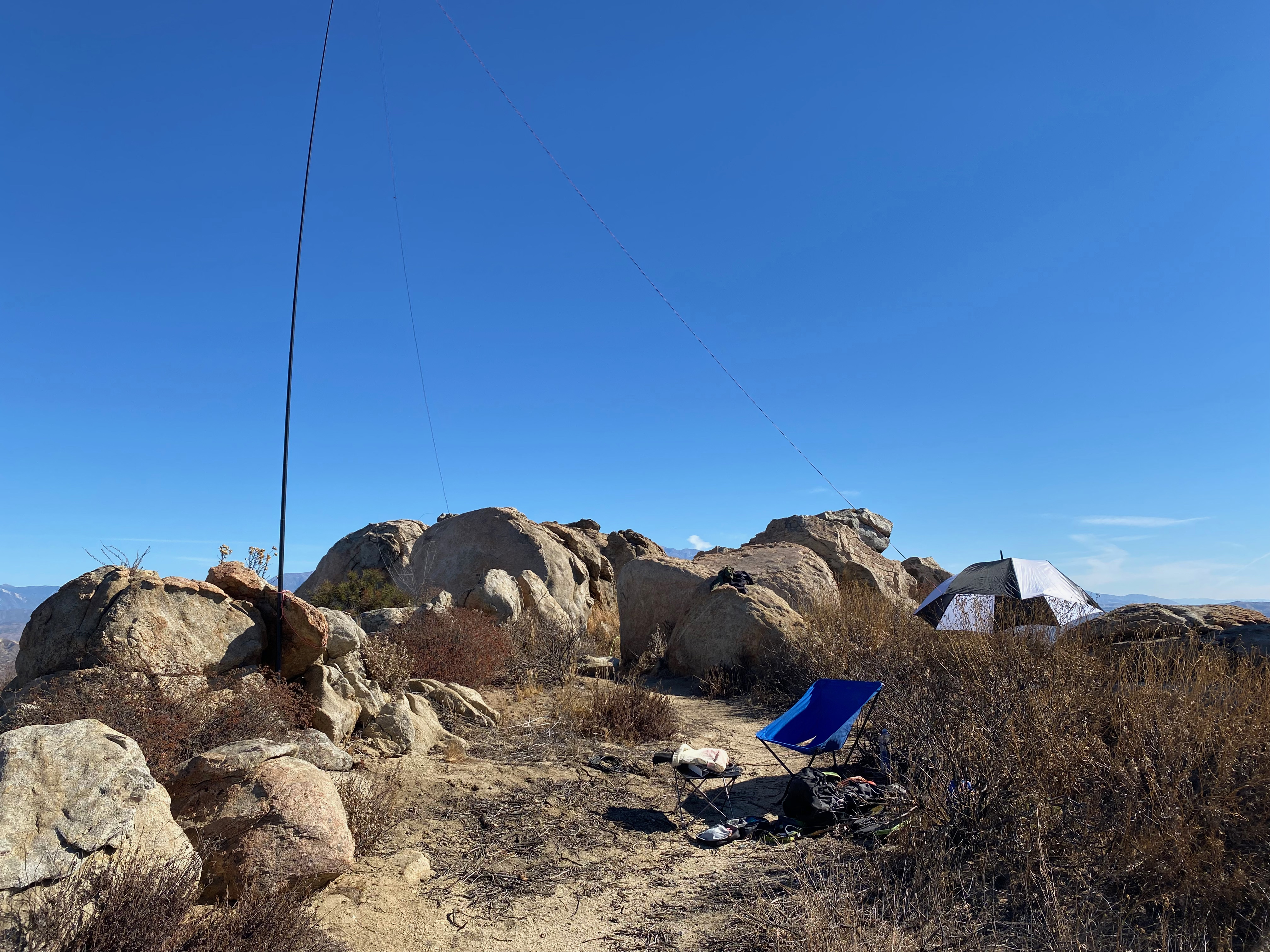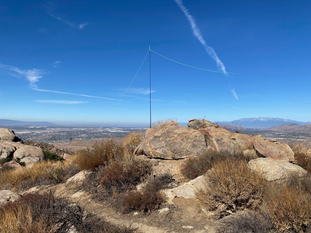 The summit looks like it is going to be a cramped summit block on the way up, but once on the top a wide set-up area appears within the activation zone. On a clear day like this one the view is spectacular. All the bigs: San Antonio, San Gorgonio San Jacinto and Santiago dominate the horizon. Lake Perris and the very cool named Mystic Lake surround.