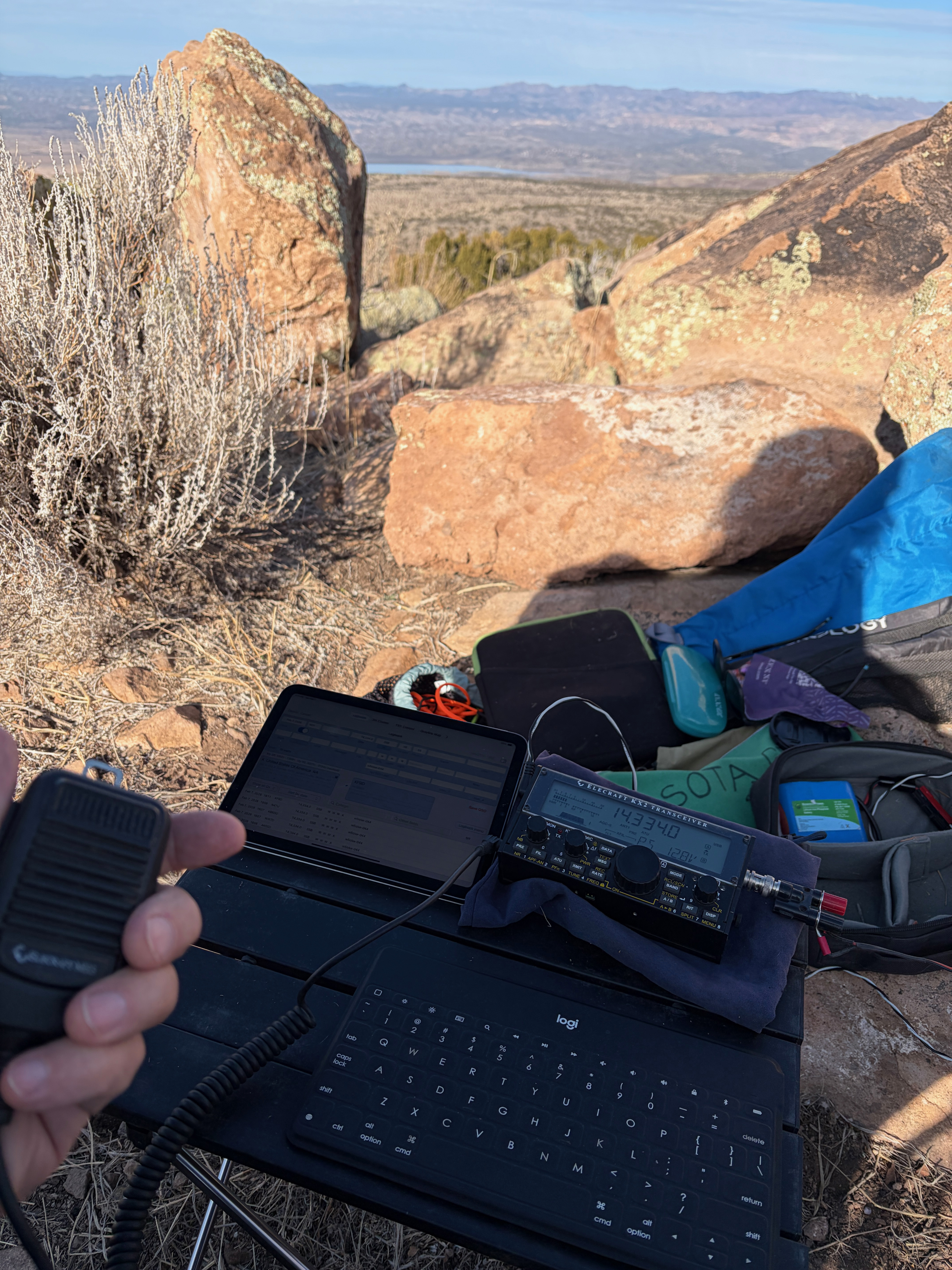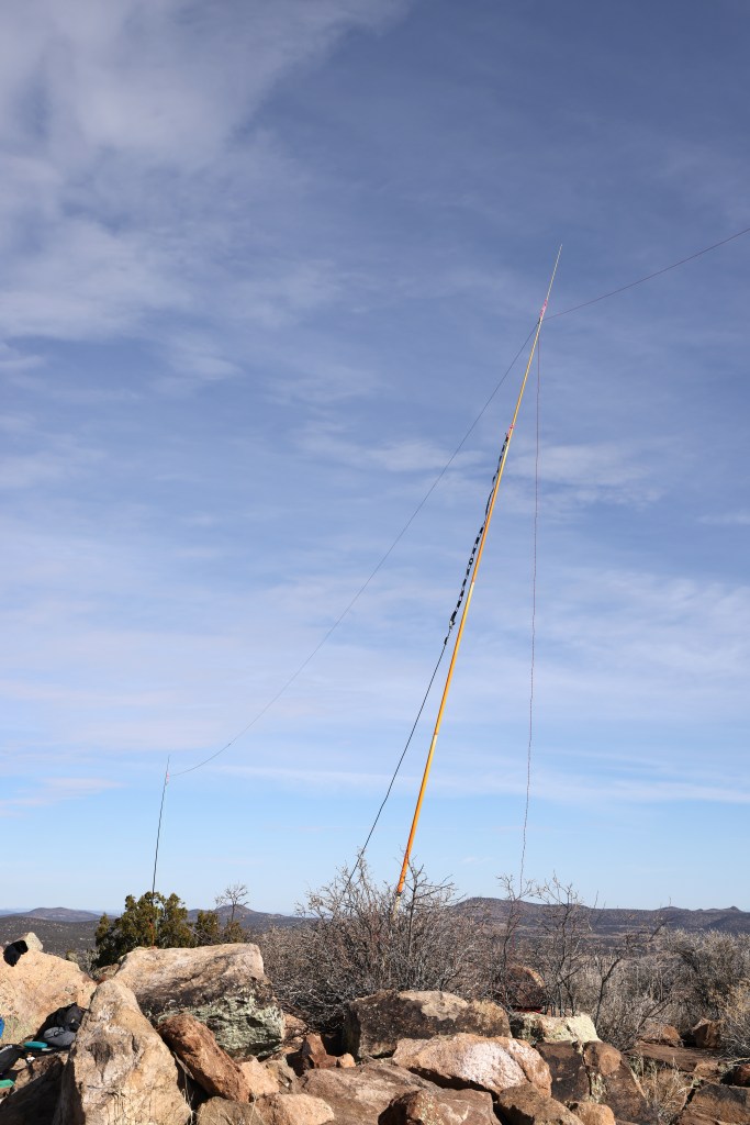 The hiking is otherwise open and easy. The summit commands a lovely view and it was easy to set up three masts for support of my doublet. Radio conditions were very good with Christian in France booming in at an honest-to-God s9. I had pileups on 20m and 15m happily populated by all the usual suspects.