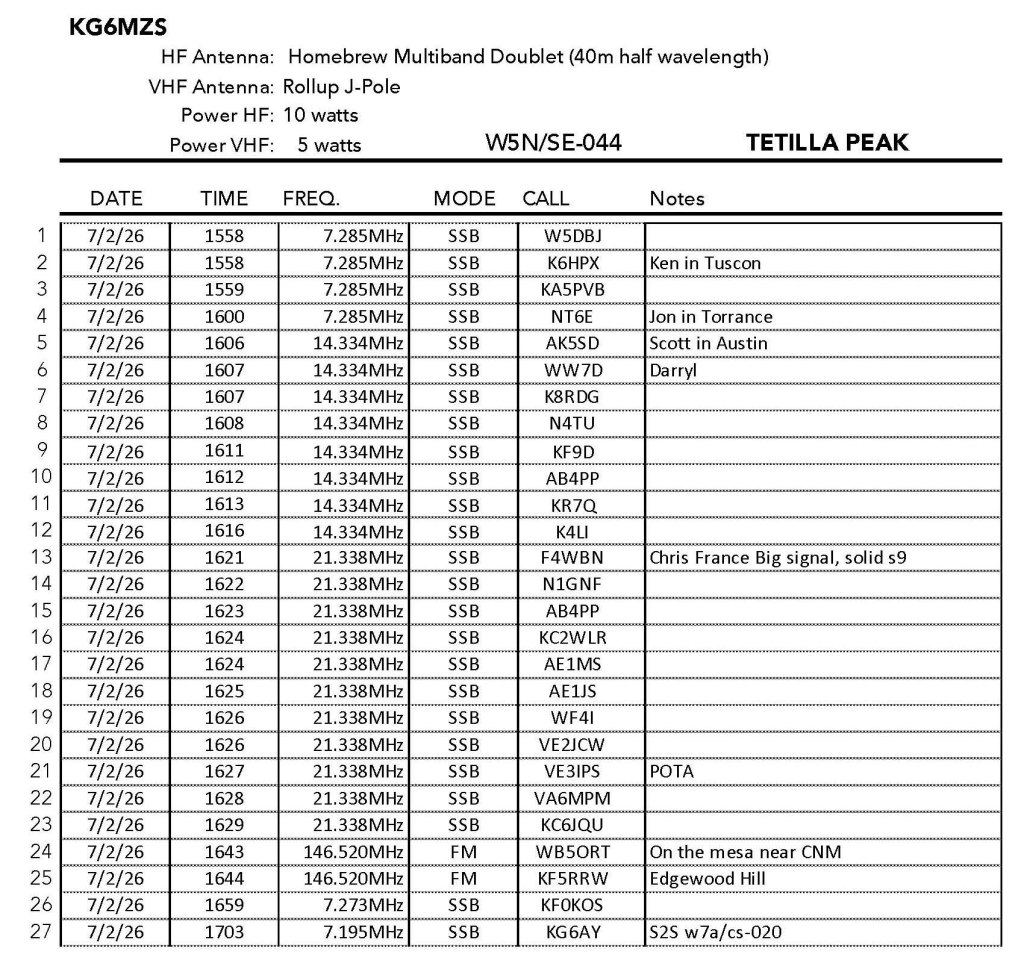 There was a register on the summit – something you don’t find too often in New Mexico. It only went back to 2024 but I saw Fred KT5X’s sign in.