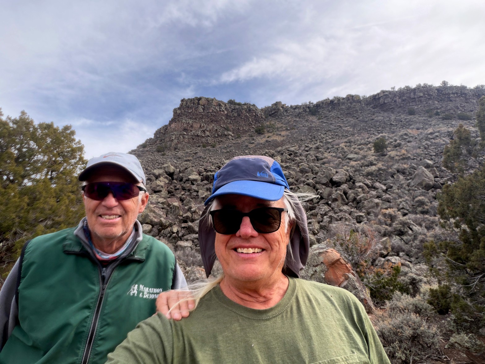 Venerable SOTA Goat Fred KT5X showing the new guy the ropes. La Mesita behind us.