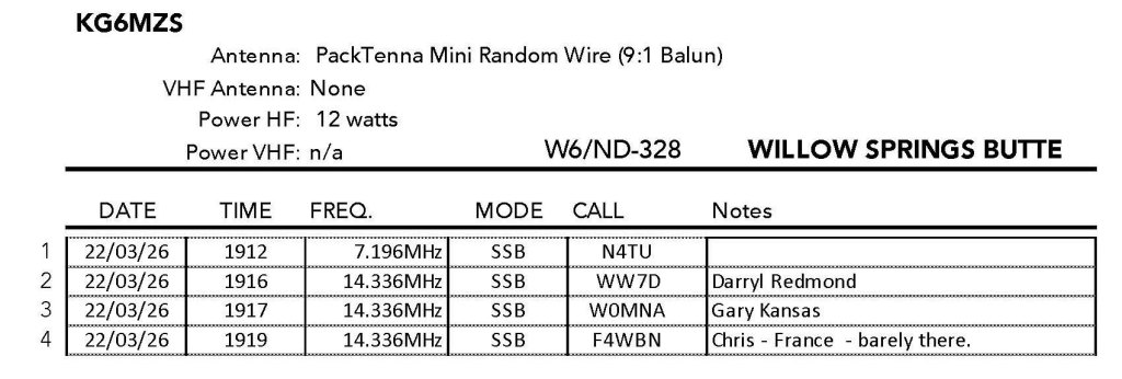 Disappointed, I pointed Whitedog back toward the Antelope Valley and activated my “plan C” summit; Willow Springs Butte. My brother Mark and I had activated nearby Rosamond Hills on a recent Sunday and were dismayed by the plethora of careless target shooters. We repeatedly heard not only the report of the firearms, but the whooshing of projectiles whistling through the air.