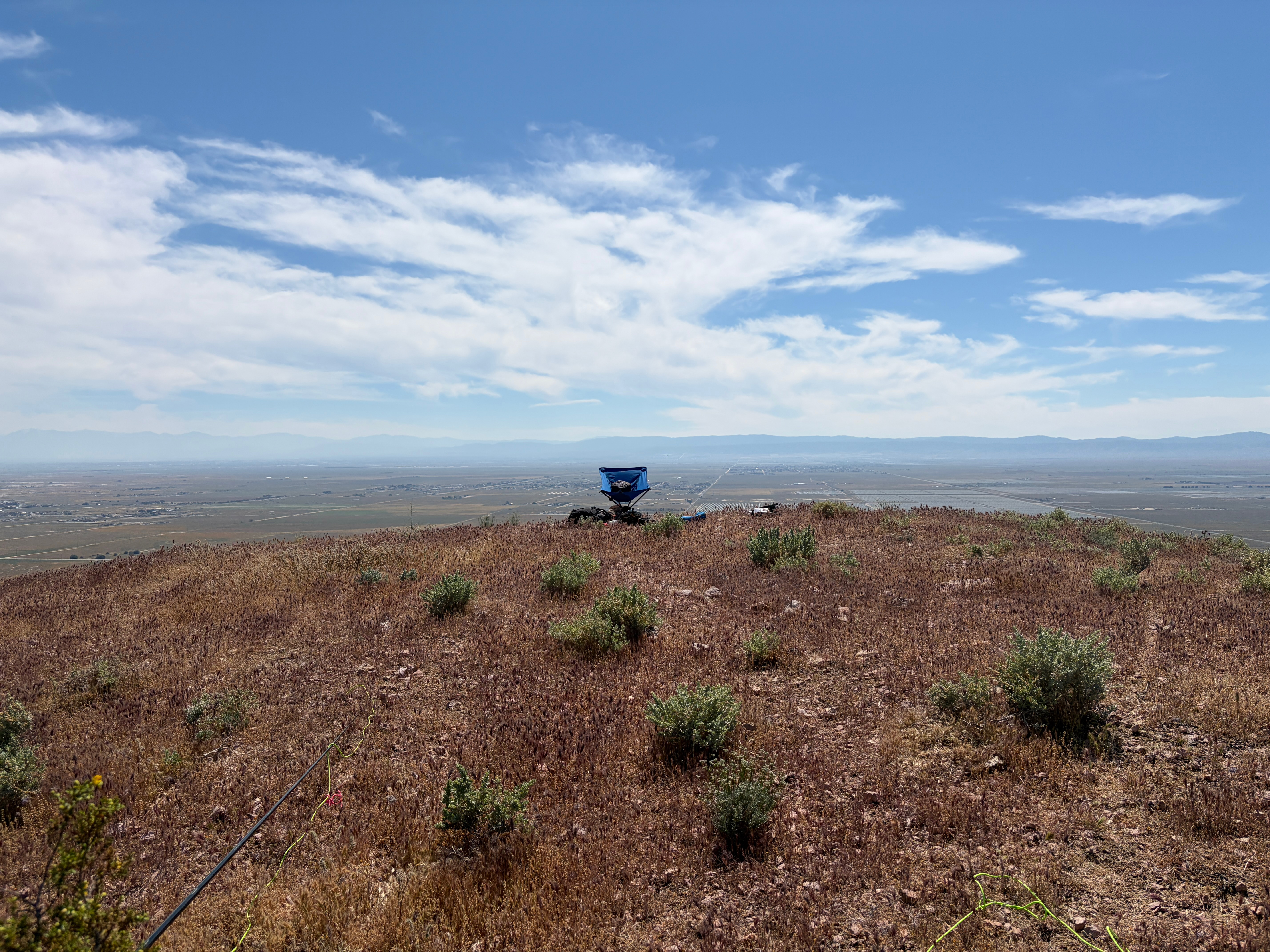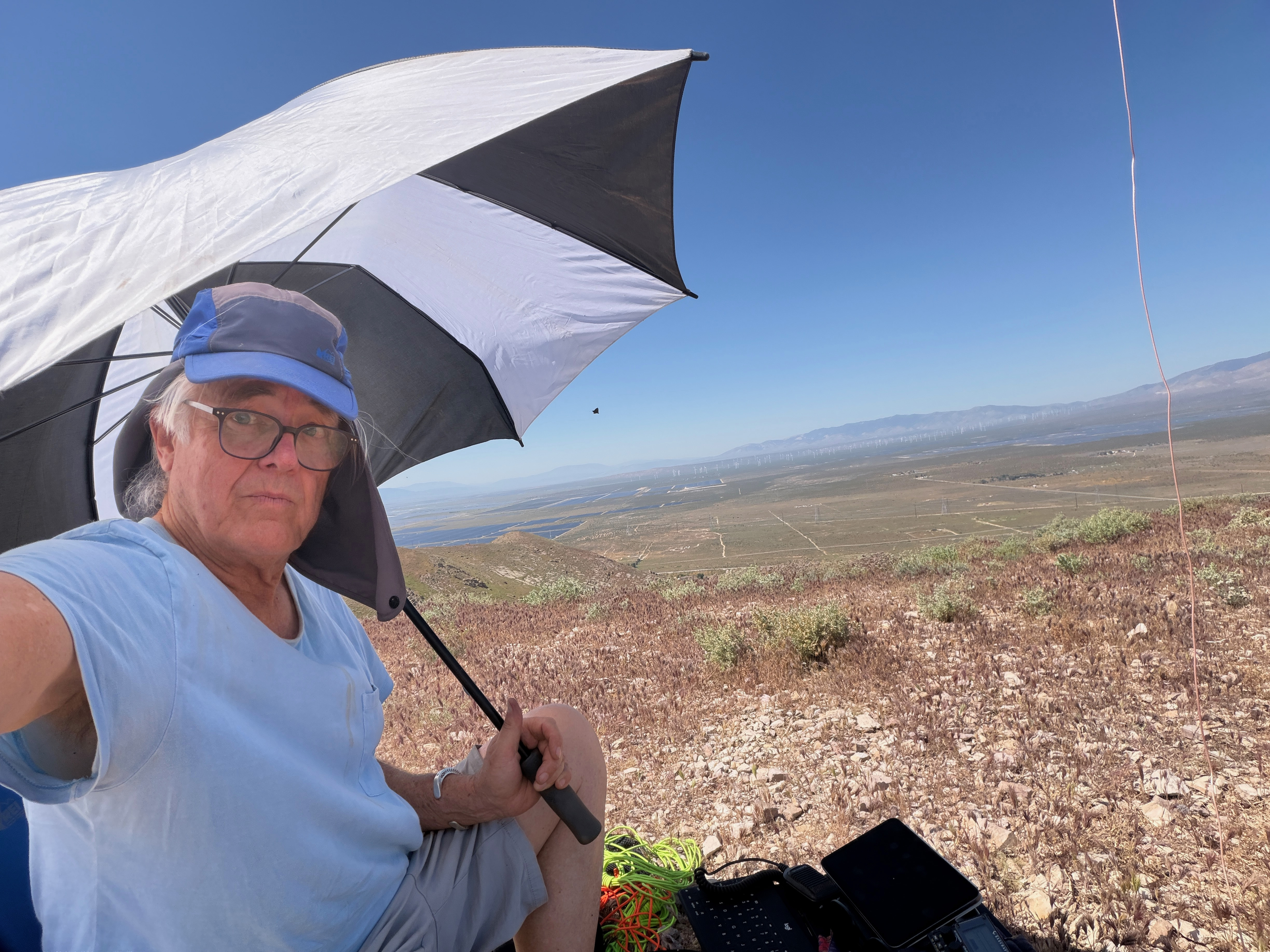 The summit only has a few low bushes to support masts. Fortunately I had an umbrella for shade as the gear certainly would have overheated without it.