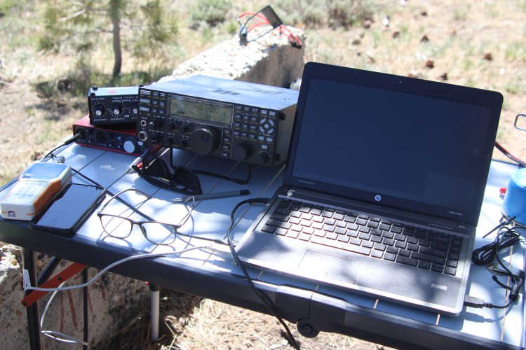 Less than one week to go. Last weekend I took all the gear up to Frazier Mountain to give all the digital gear a trial run. I forgot several things and worked out quite a few bugs in the operation. The main problem was that my new laptop needed a more reliable power source than the AC outlet in my Tacoma. I found an old Coleman AC inverter around the shack here and coupled that with a Bioenno 40ah LiPO battery. I was running the sceen at 50% brightness to save the battery but that made it very hard to see in the bright mountain environment.