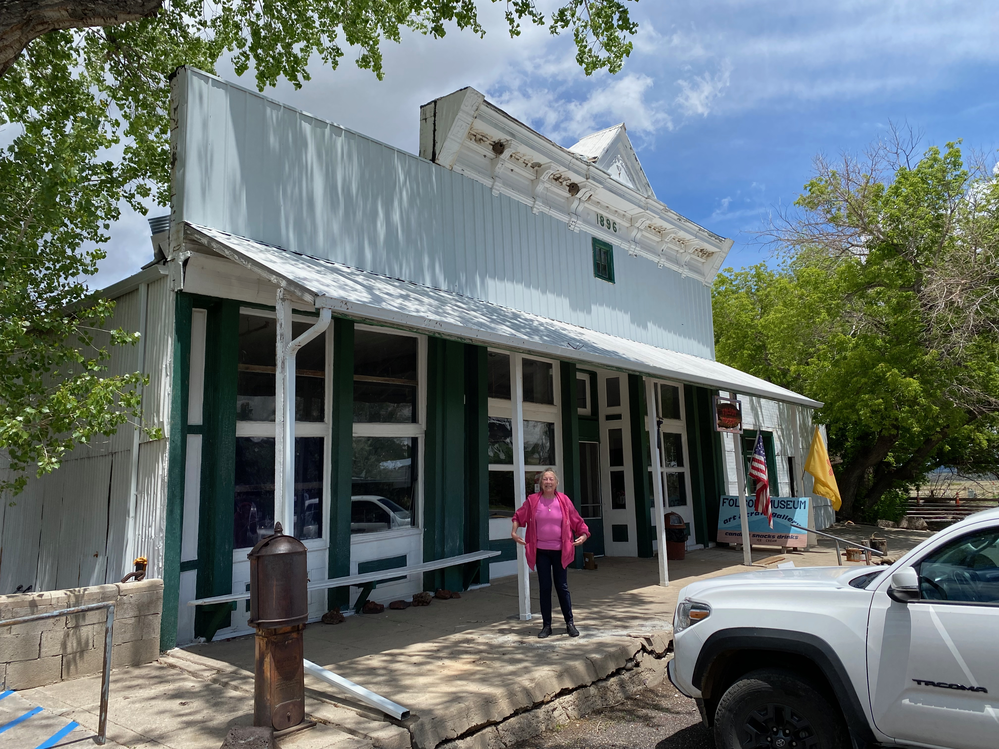 After packing up, KG6MZR and I drove into the fascinating town of Folsom. If you are ever in this area, do not miss the Folsom Museum. Volunteers Margaret and Nick there told us that despite the igneous volcanoes and lave flows that surrounded the area, there were vast sedimentary deposits from a prehistoric sea that had yielded dinosaur bones and older fossils.
