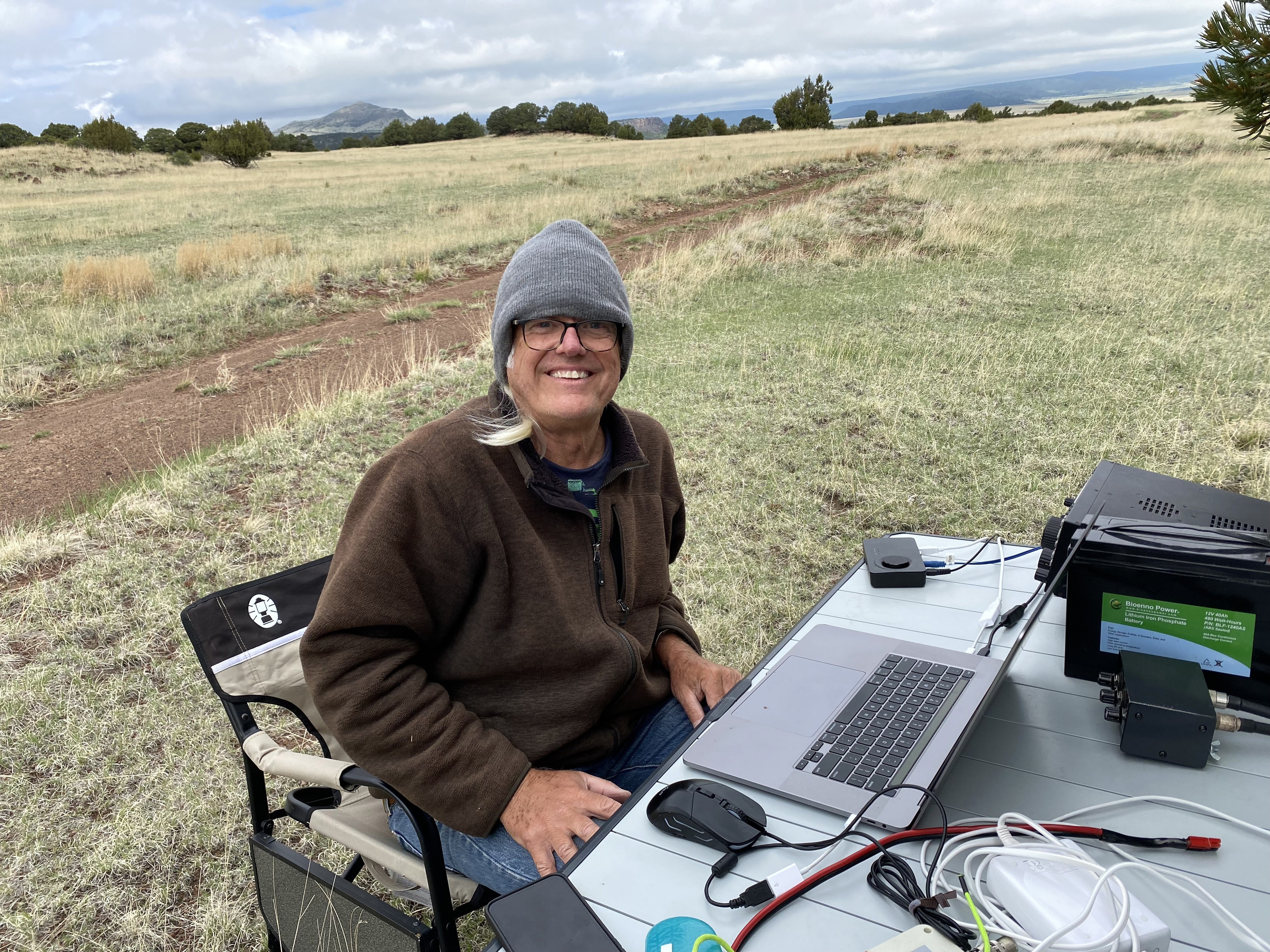 We reached the national monument about 9 am Mountain Daylight Time and found a nice dirt road that took us around the north side of the volcano. I excitedly set up in the lee of a lone piñon.