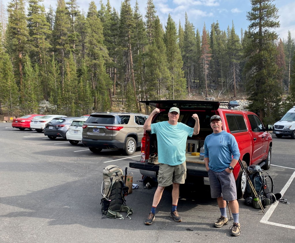 Fresh starting out at the trailhead in TuolommeBill and Steve feeling strong after the car shuttleIt was pretty smoky all day the first dayObligatory trailhead sign photoThis is actually the next morning after the deluge.