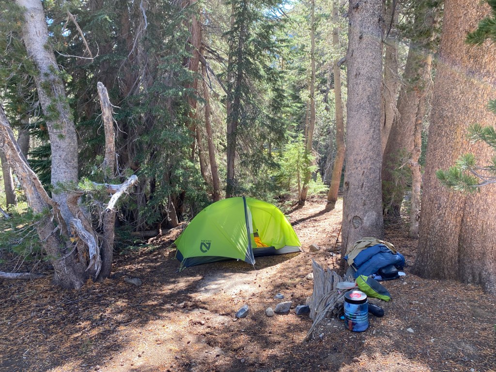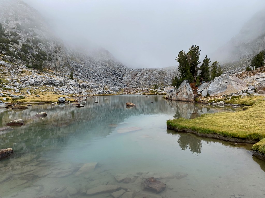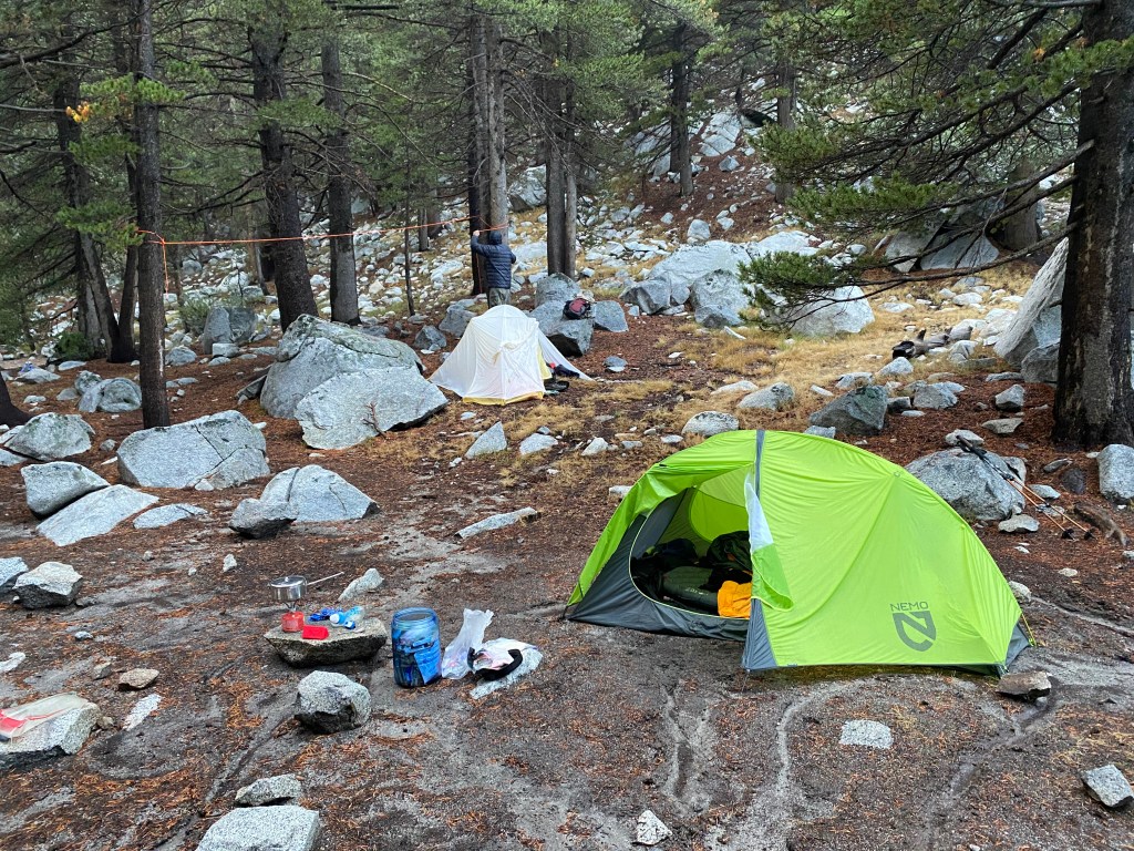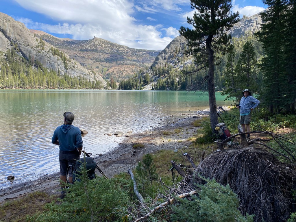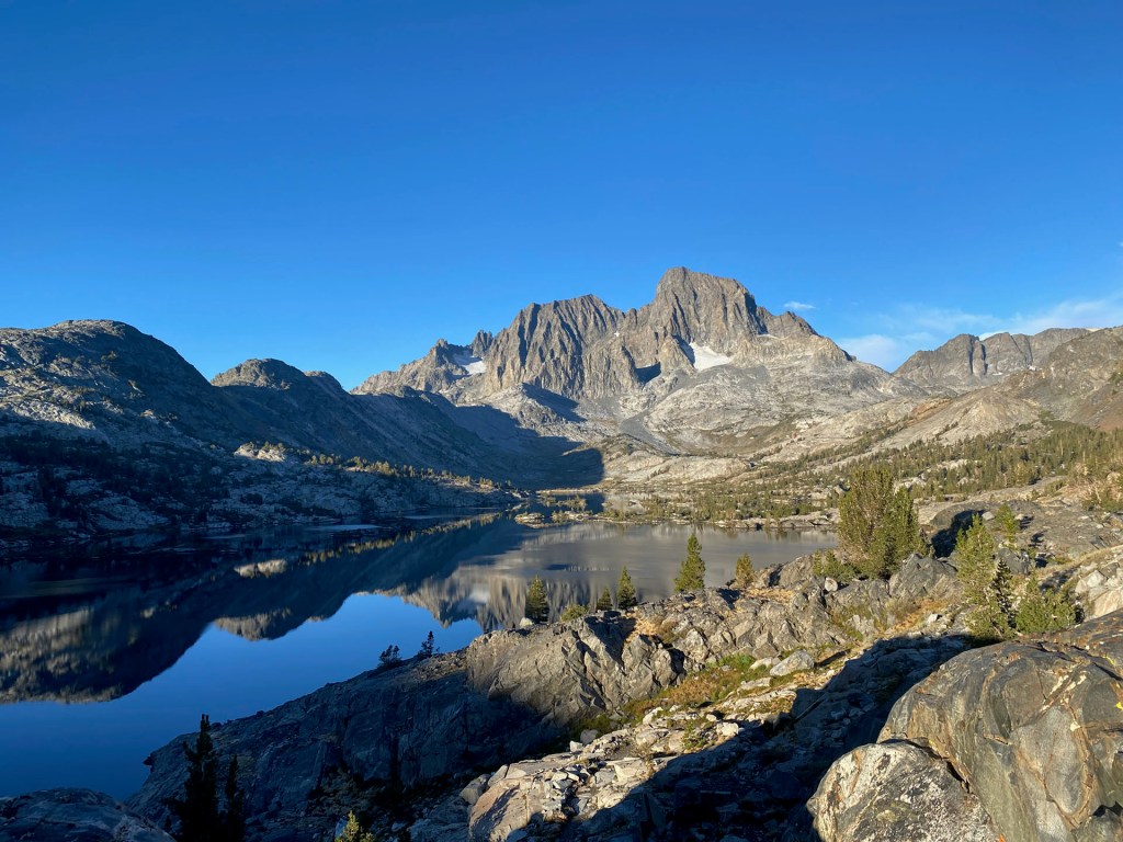 Day 3: September 14, 2022: The smoke and rain clear out for our camp at Garnet Lake. 6.2 miles and 1,250′ of elevation gain.