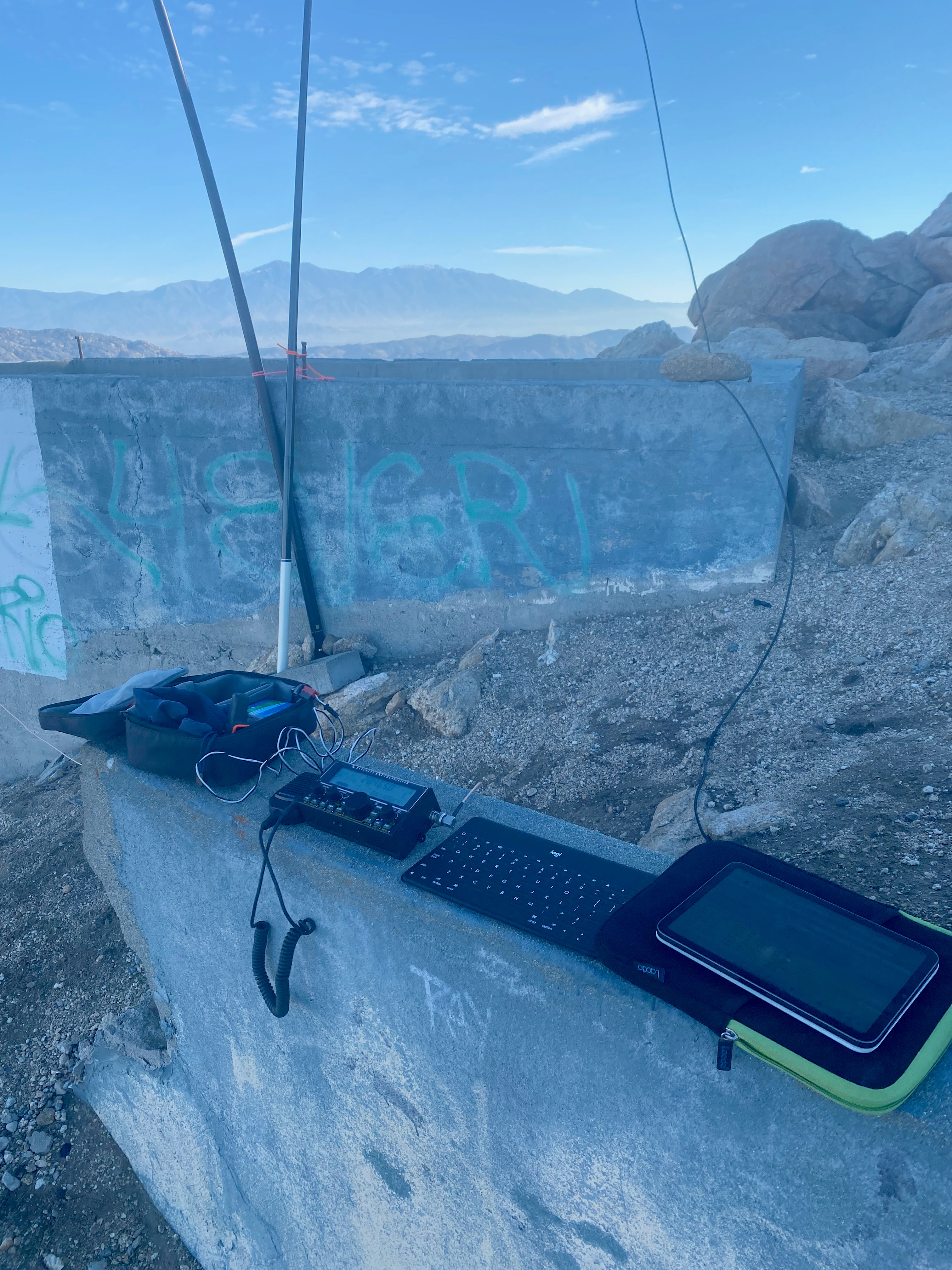Stations reported hearing me on 2m but I heard nobody due to my FT-5D’s receiver getting totally de-sensed by the RF environment. Others have suggested setting up on the south side to avoid this problem. I tried several spots down the mountain with no joy. Likewise with cell reception. I had to use my Garmin InReach Mini’s Iridium satellite network to put up spots. HF was not a problem.