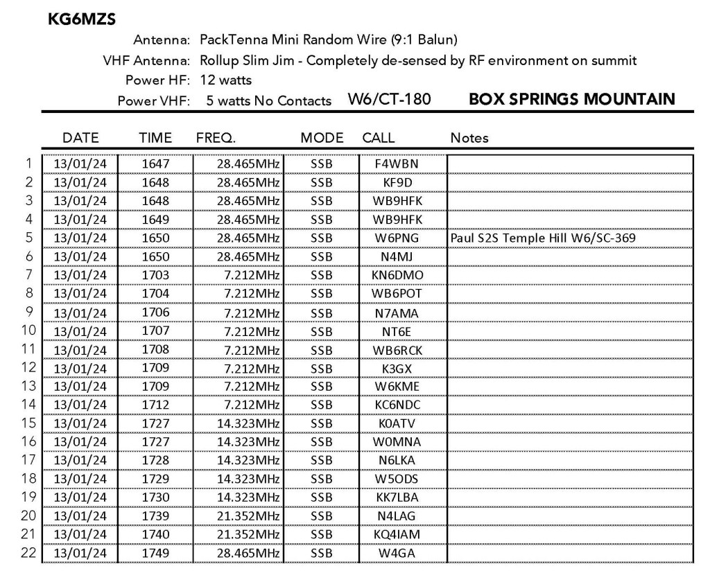 I had a lot of fun on the summit with DX contacts to France (thanks Chris!) and Spain, S2S contacts to North Carolina (thanks Jean and Mark) and California (thanks Herb and El). I got a lot of the usual suspects and a surprise visit from Cecil WD6FZA – grand poobah of the PAPA System. That was a first! Thanks Scott WA9STI (using club call WA6LE) for spotting me on the PAPA system. Thank you everybody for chasing!