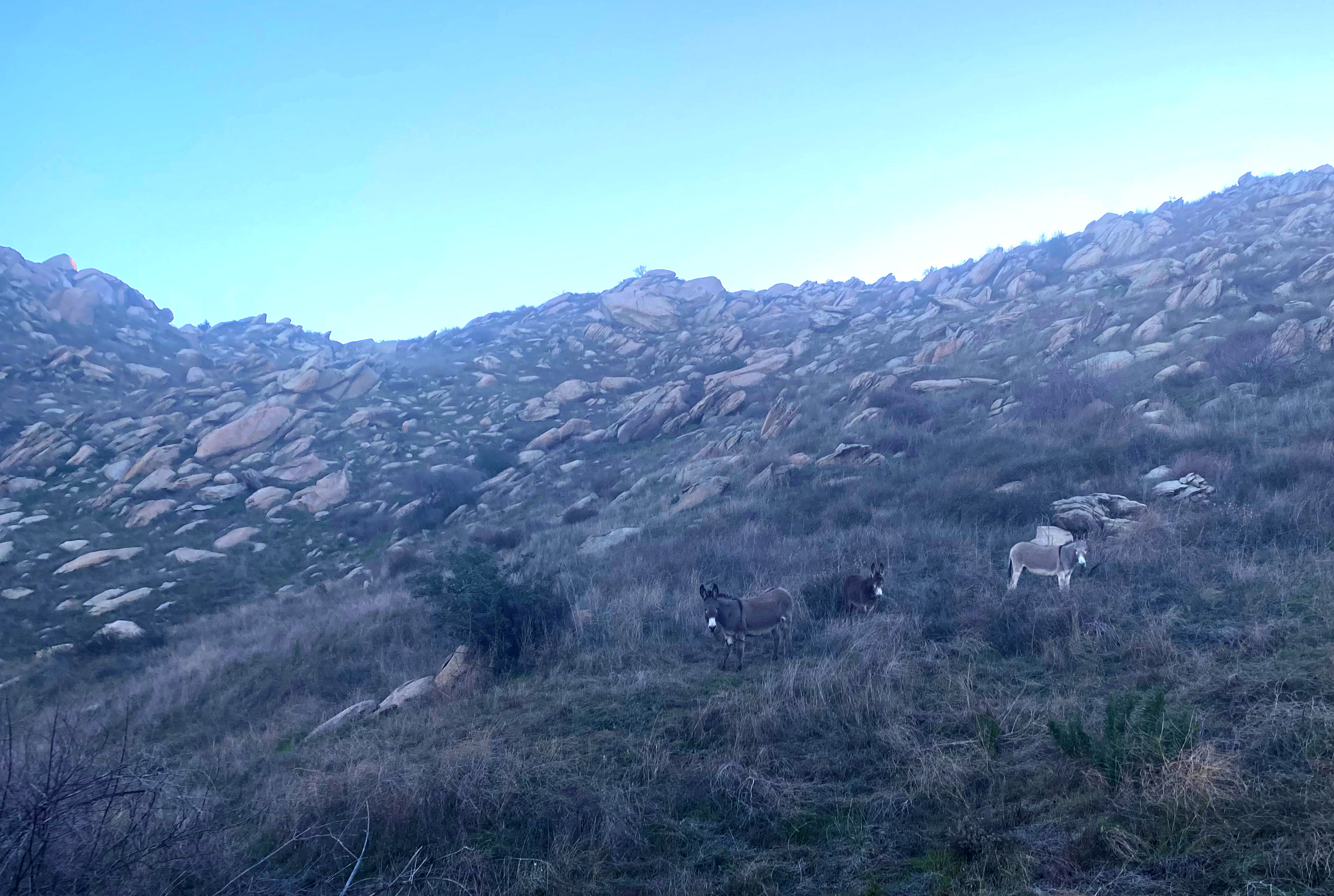 As I started hiking the sun came up and started to warm the hillsides after a chilly winter night, I head the sound of braying! Sure enough herds of wild donkeys were everywhere. Cassie KG6MZR had a saddle mule – Kentucky Darla – for years and would’ve loved this. I took the Springs Trail shortcut and I got pretty close to three of these creatures. I suggest if you want to seem them you plan on being there early as I saw very few on the way down.