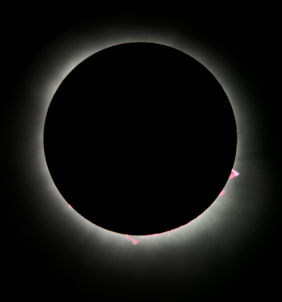 It is an astounding coincidence that the angular size of our Moon in the sky is almost exactly the same angular size in the sky as the far more distant and far larger star we call the Sun. This totally rando twist of fate gives us the wondrous phenomenon we know as a total solar eclipse.