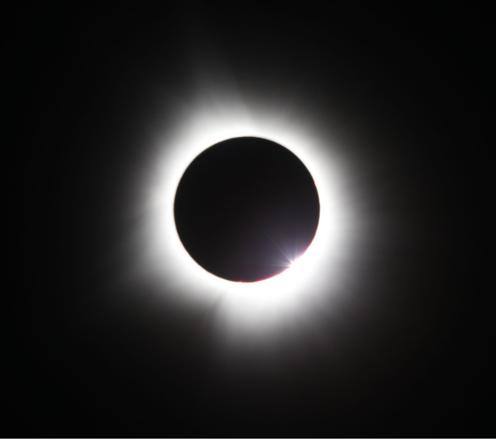 The 2024 North American Eclipse at totality. 400mm lens with a 100000 neutral density filter.