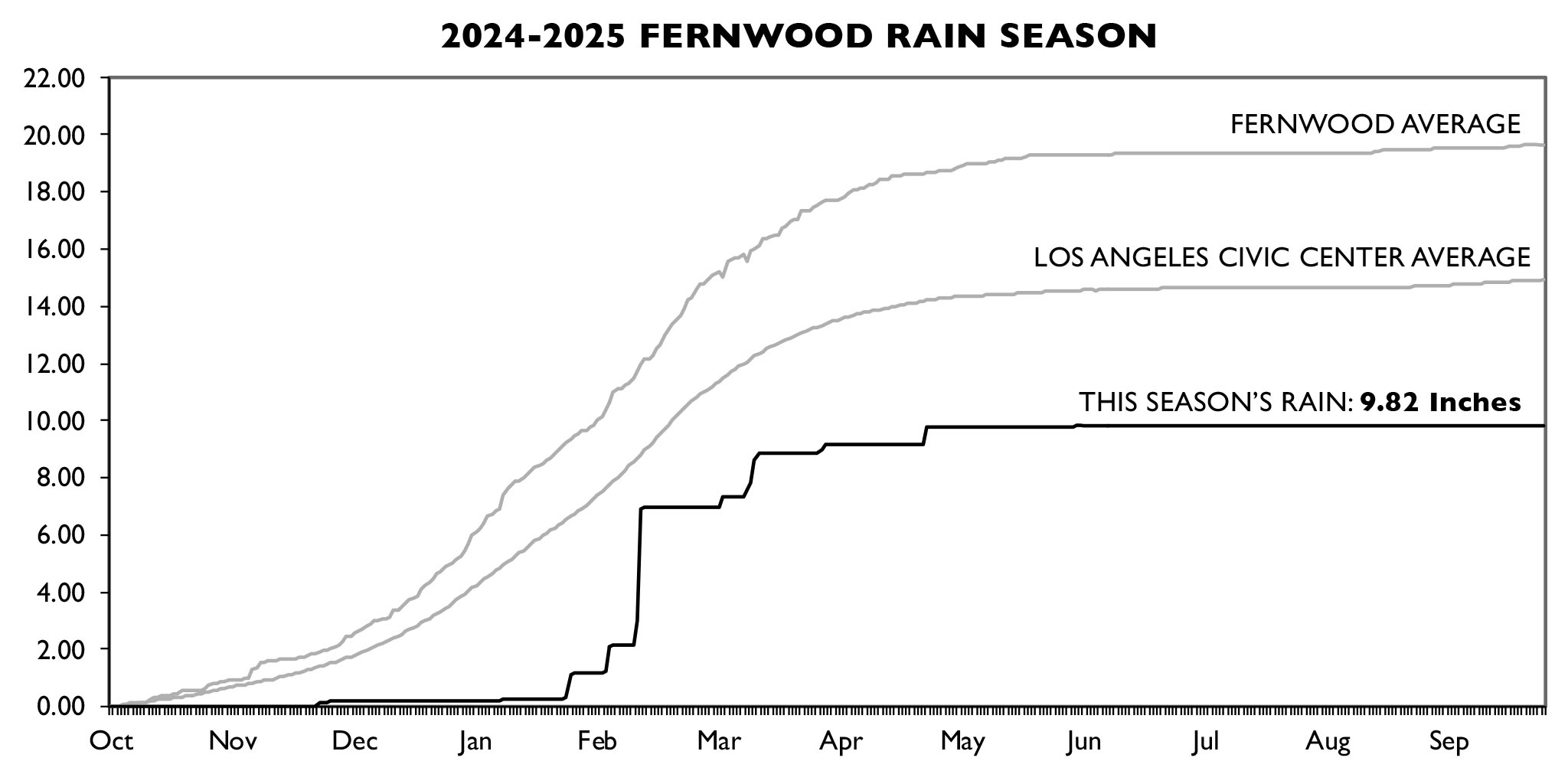 Below is last season’s rainfall for the 2024-2025 water year: