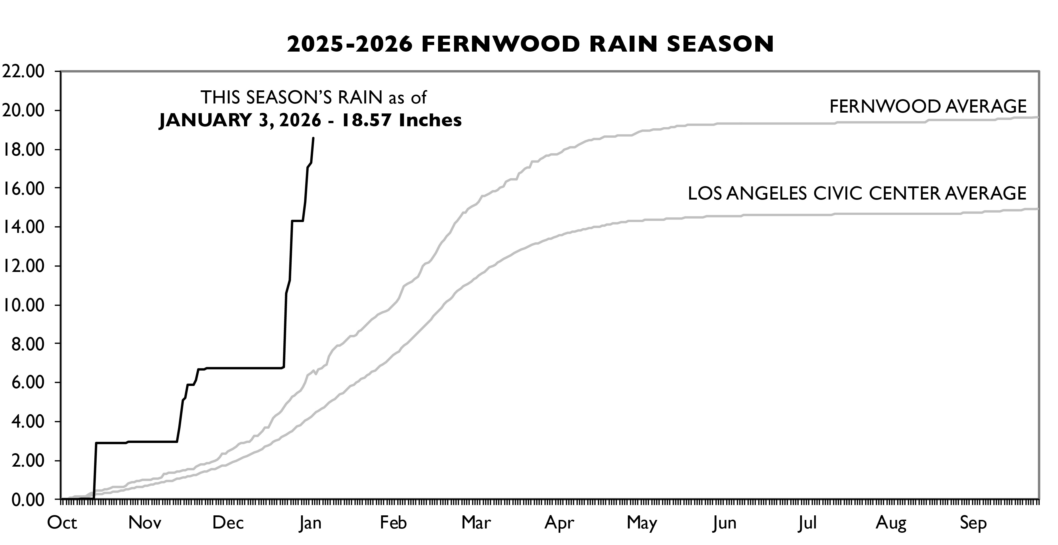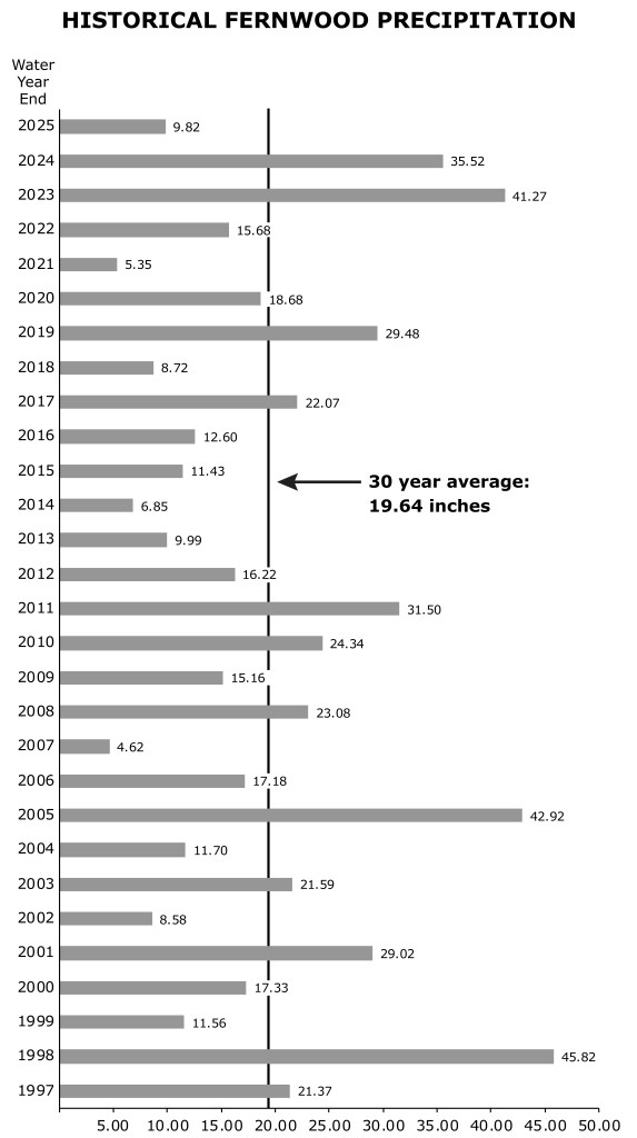 Below is the current rain for the 2025-2026 water year. The water year runs from October 1st through September 30th of each calendar year: